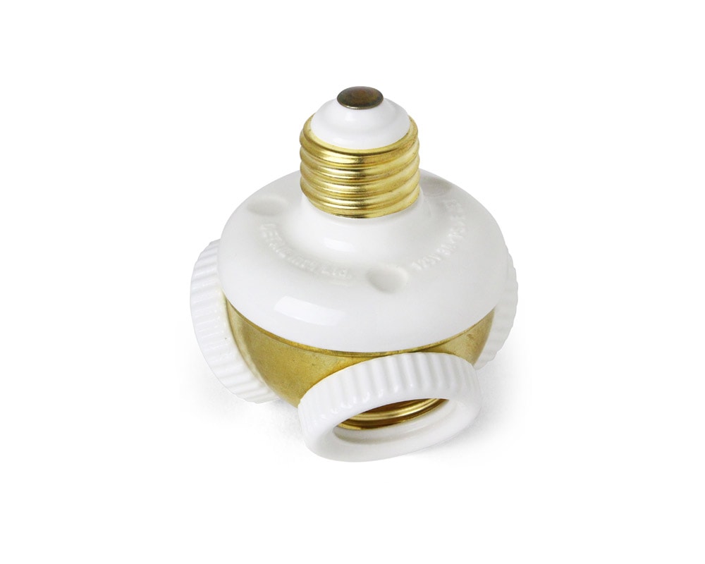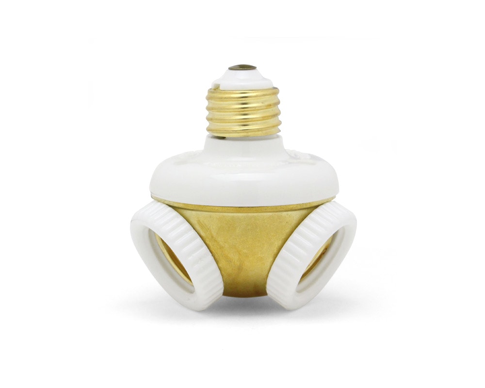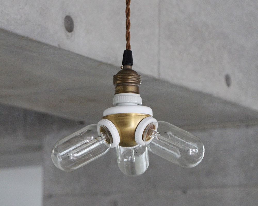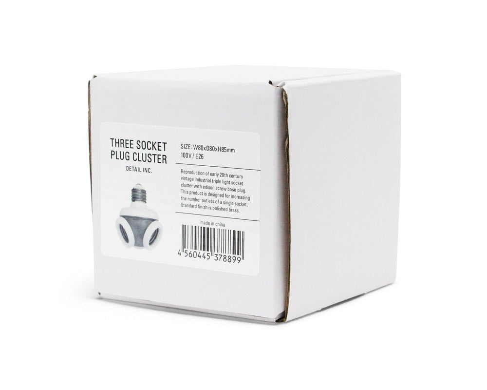 1900年代初頭にアメリカで製造されていたスリーウェイプラグクラスター、通称ベンジャミンソケットを忠実に再現しました。 シンプルな構造ながら、当時と同じ真鍮とセラミックを組み合わせるこだわりのプロダクトに仕上がっています。 通常1灯のみのソケットに使用するだけで、オリジナリティーのある照明器具に簡単に変えることができるのが最大の特徴で、口金は日本で一般的なE26となっていますので、幅広い器具に対応します。 ※ご使用の際は、灯具に記載されている規定ワット数内でご使用下さい。(例として:灯具の表記が60Wの場合、20W電球×3灯まで使用。また、LED電球を使用の際は各LED電球の定格消費電力数の合計が60Wを超えないように使用してください。)