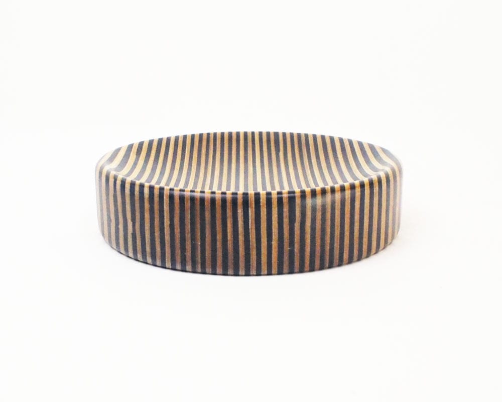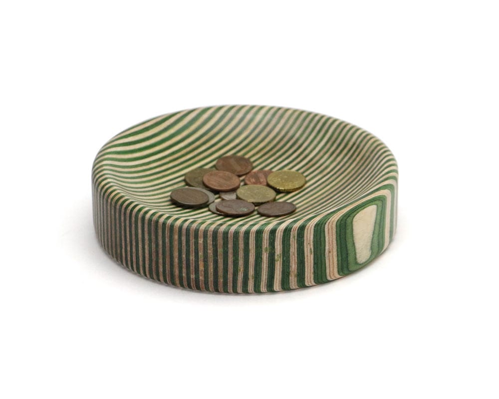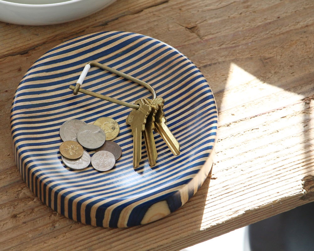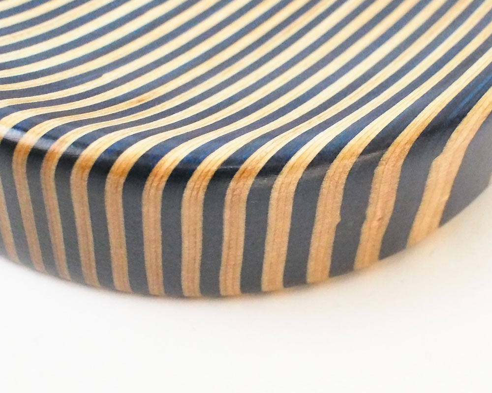 程よい厚みと重厚感のあるストライプ柄ウッドトレイです。 ブルーやグリーンの色の入ったプライウッド/積層合板の積層面をあえて見せるようにトレイに成形したウッドトレイです。 木材を美しく削り出し磨かれたたトレイは、程よく厚みもあり、どっしりとした安定感があります。 玄関先の小物入れや、デスクトップでのトレイとして、リビングでアクセサリートレイとして、存在感もあり、お洒落にお使いいただけます。