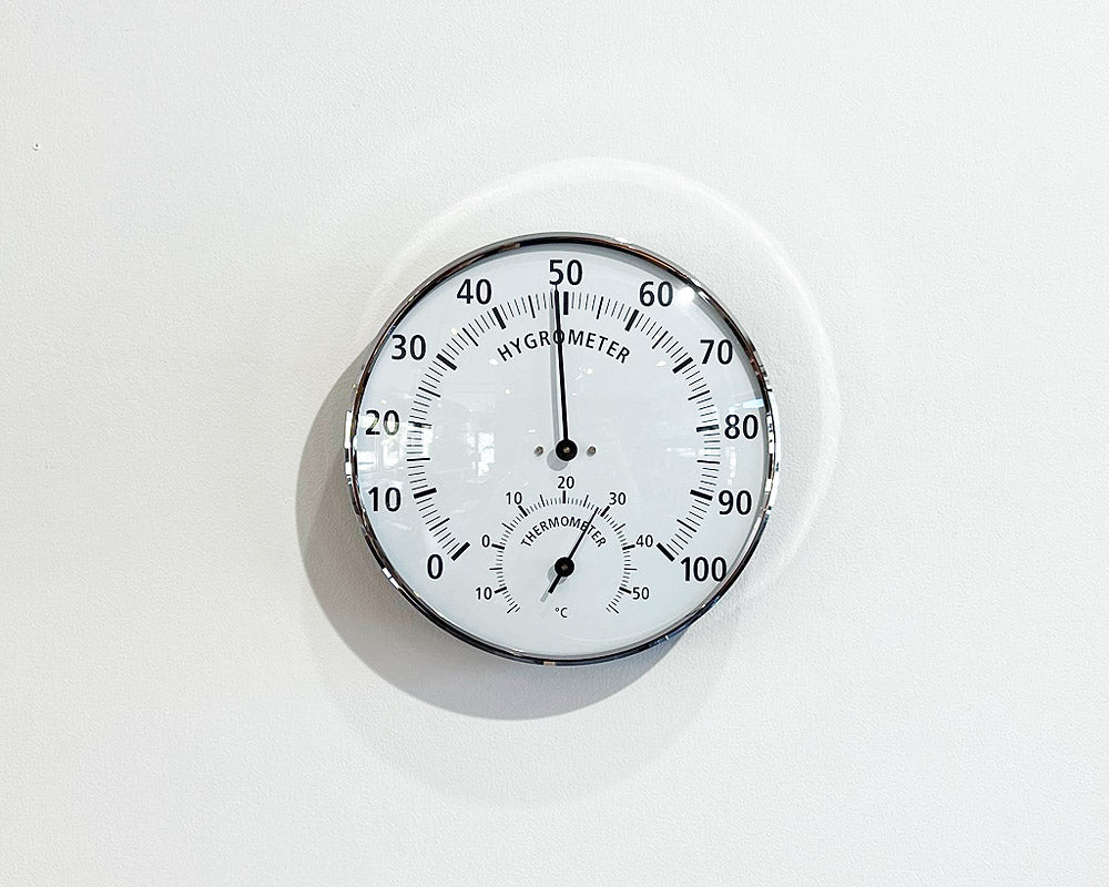 1964年ドイツで設立されたTFA Dostmann社による、質実剛健なデザインのアナログ温湿度計です。ドイツ製らしく、機能美にあふれたシンプルなデザインの壁掛けの温湿度計です。少し大きめのサイズは視認性も良く、上部に湿度計、下部に温度計で構成され、クロムメッキ真鍮ベゼルとガラスカバーを備えています。温度と湿度を簡単に確認でき、的確な冷暖房と換気が可能で、快適で健康的な生活環境を作り出し、光熱費も節約できます。この温湿度計は全ての行程をドイツにて製造されています。