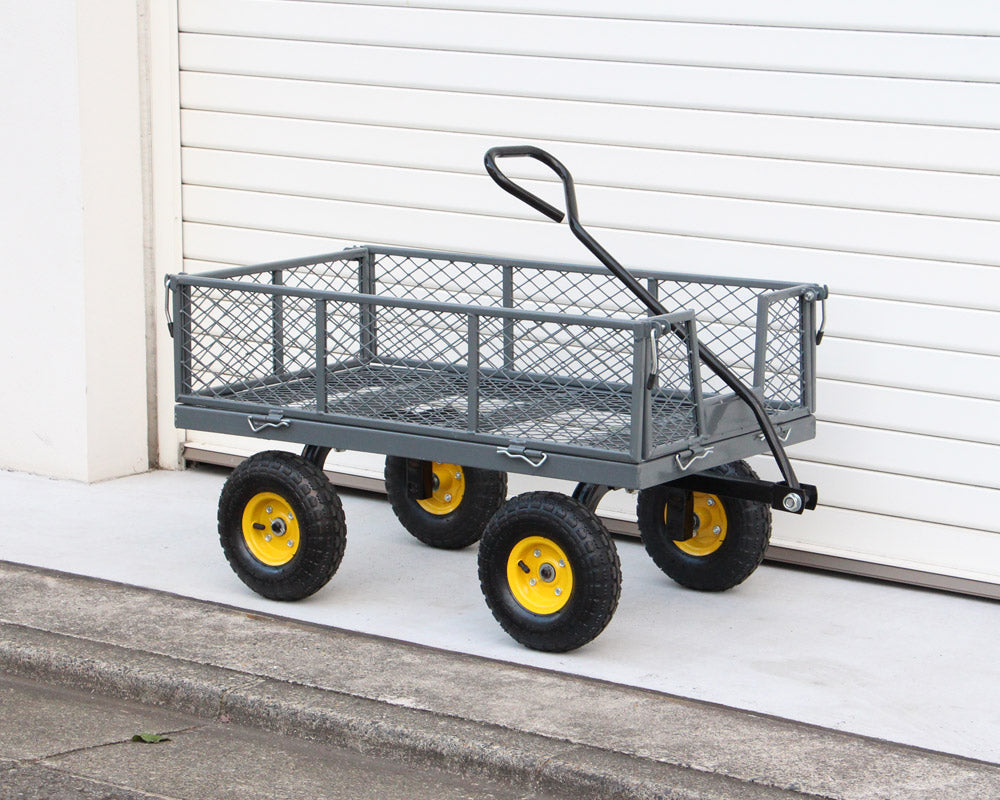 キャンプやガーデニングなどのアウトドアシーンで活躍しそうなヘヴィデューティなメッシュカートです。 荷台のトレイが無骨なアイアンメッシュでできた、一般的なアウトドアで使用するキャリーカートとは一線を画するデザインが魅力のカートです。 耐荷重はなんと300kgで、アウトドアでの使用はもちろん、倉庫やガレージでの使用も十分な耐荷重を有しています。 また、グレーのボディにイエローのホイールを履いたタイヤがデザイン的にも男心をくすぐります。 ただ、一般的なアウトドアのキャリーカートと違い重量は約20kgと重いのですが、他の人とは違ったキャリーカートをお探しの方はぜひお勧めです。