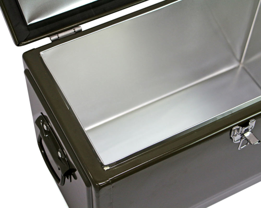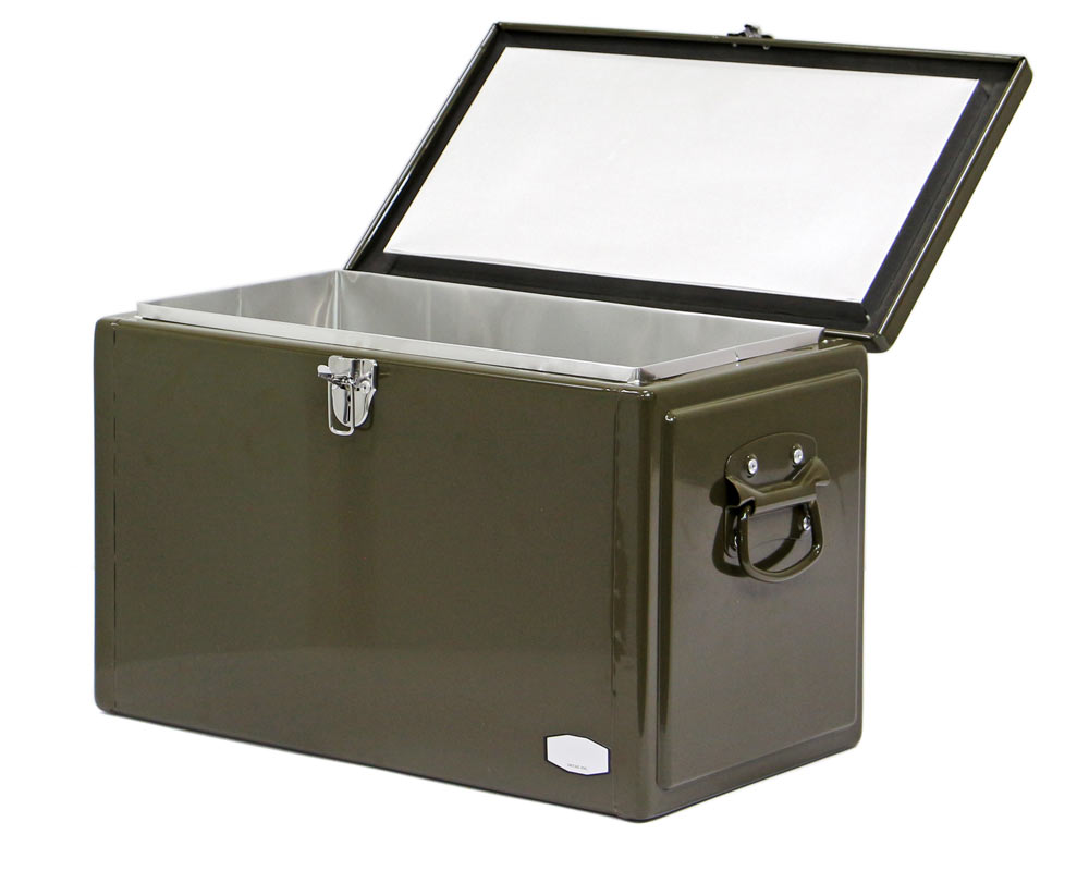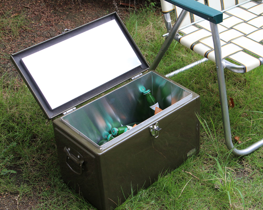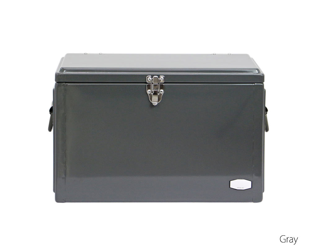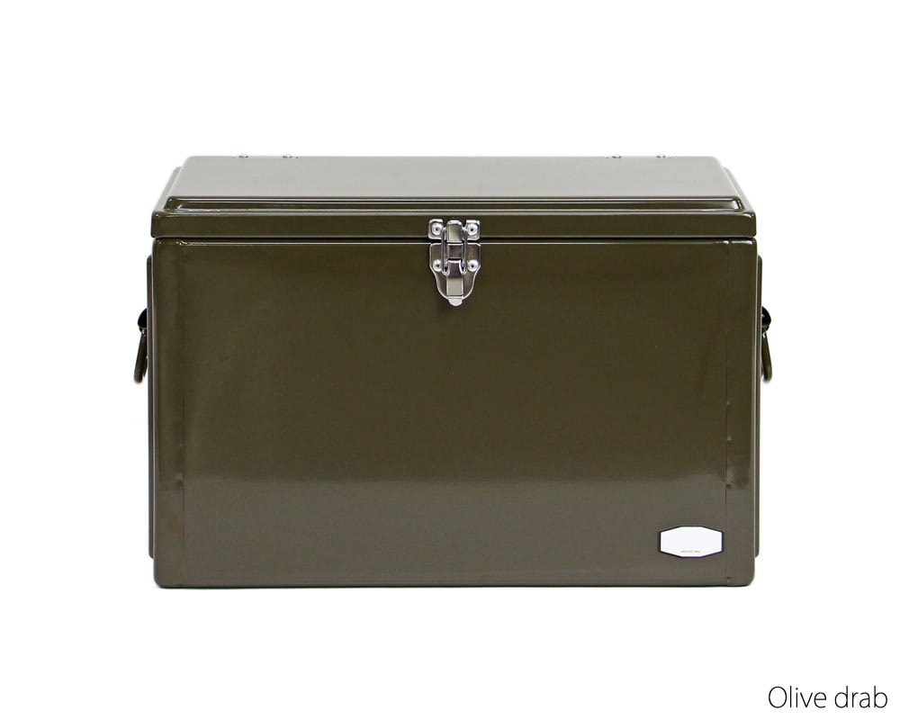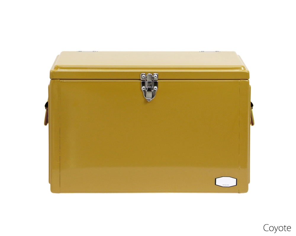キャンプなどのアウトドアシーンで活躍しそうなクラッシックなデザインの金属製クーラーボックスです。 古いクーラーボックスを現代風のカラーリングにアレンジして作られた、スチール製のクーラーボックスです。 内側はアルミを使用し、錆びにくく設計されており、約24時間の保冷が可能。 一般的なプラスチック製のクーラーボックスとは違った雰囲気のものを探されている方におすすめです。