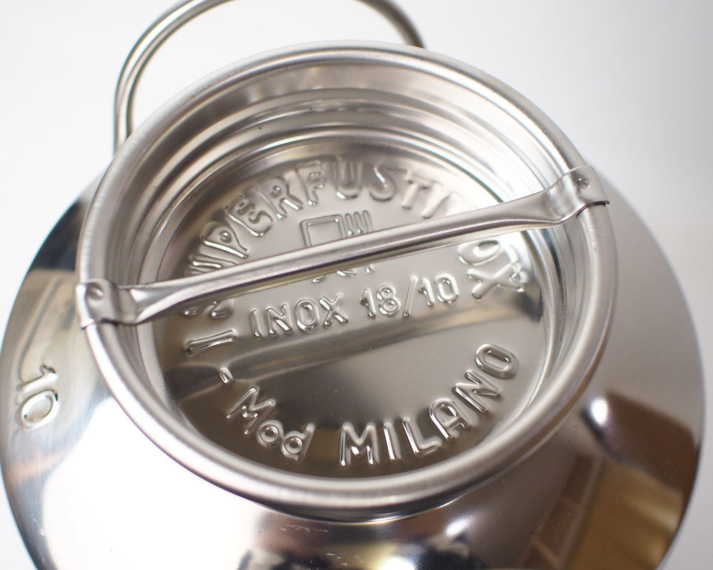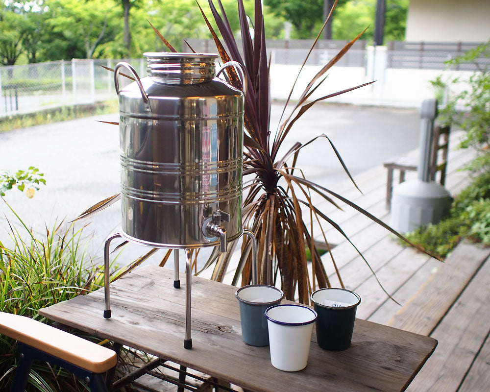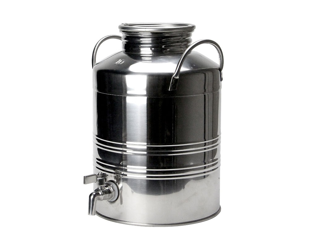 イタリアmarchisio/マルキジオ社のステンレス製オイルドラム/ディスペンサーです。 イタリア製の美しいステンレスディスペンサーです。本来はオリーブオイルを入れるためのオイルドラムですが、日本ではあまりなじみがないので、レモネードを作ったりウォーターディスペンサーとしてのお使いがおすすめです。 もちろんオリーブオイルを普段からたくさん使うカフェやレストランなどの飲食店には、便利なオイルディスペンサーとしてお使い下さい。 また、アウトドアシーンで、ホームパーティーやガーデンパーティーなど大人数で集まる時にピッチャー代わりにドリンクを入れてお使いいただくことで、ステンレス製のイタリアらしいデザインは、洒落た演出に一役買ってくれることでしょう。 ステンレス製ですので、錆の心配もなく、また割れることもないので扱いやすく、お手入れがしやすいのも良いところです。