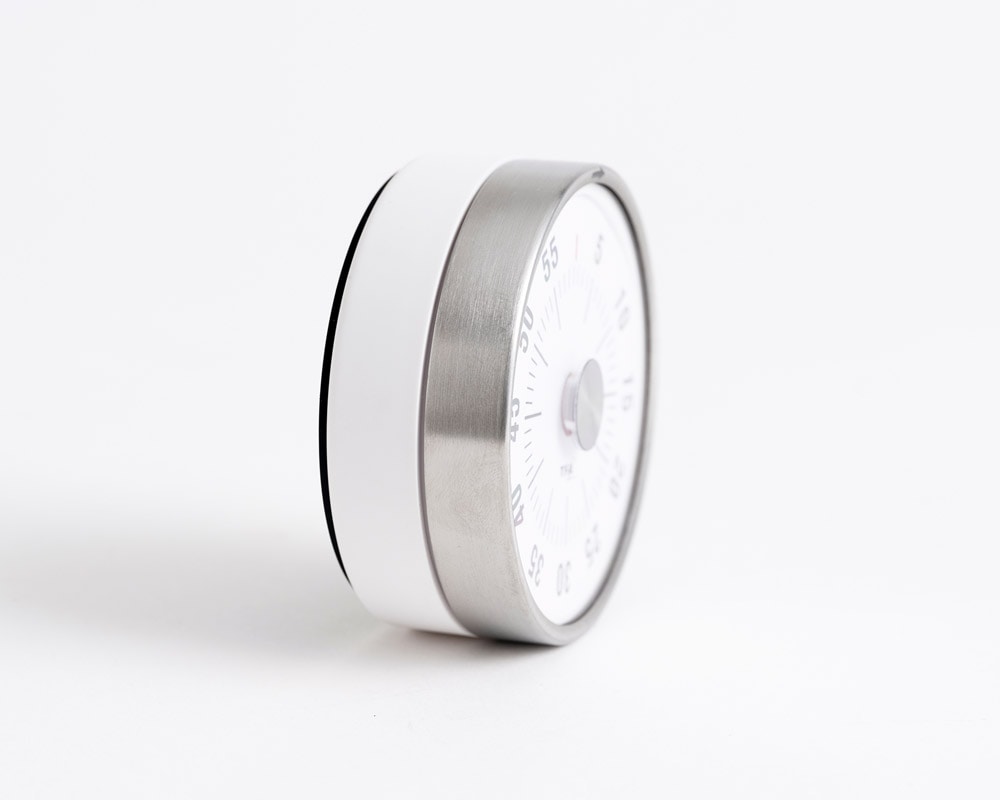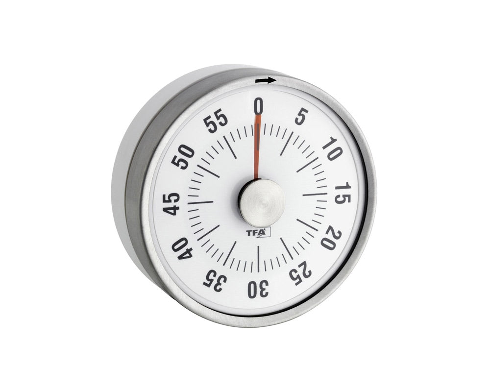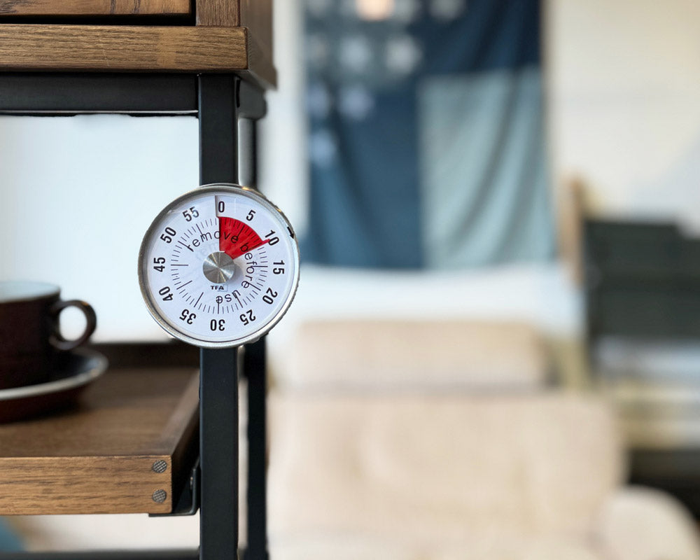 1964年ドイツで設立されたTFA Dostmann社による、残り時間が一目でわかるアナログキッチンタイマーです。ドイツデザインならではの機能美にあふれたシンプルなキッチンタイマーです。本体を回して時間をセットする電池不要の機械式で、最大60分まで設定可能。残り時間は赤いシートで文字盤に表示されるので視認性が高く、感覚的にわかりやすいのが秀逸なデザインです。背面にはマグネットがついているので、冷蔵庫やラックなどスチールのモノに取り付けできます。※ご使用の際は、一旦60分の位置まで完全に巻き上げてから、希望の時間にセットしてください。