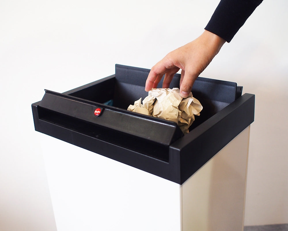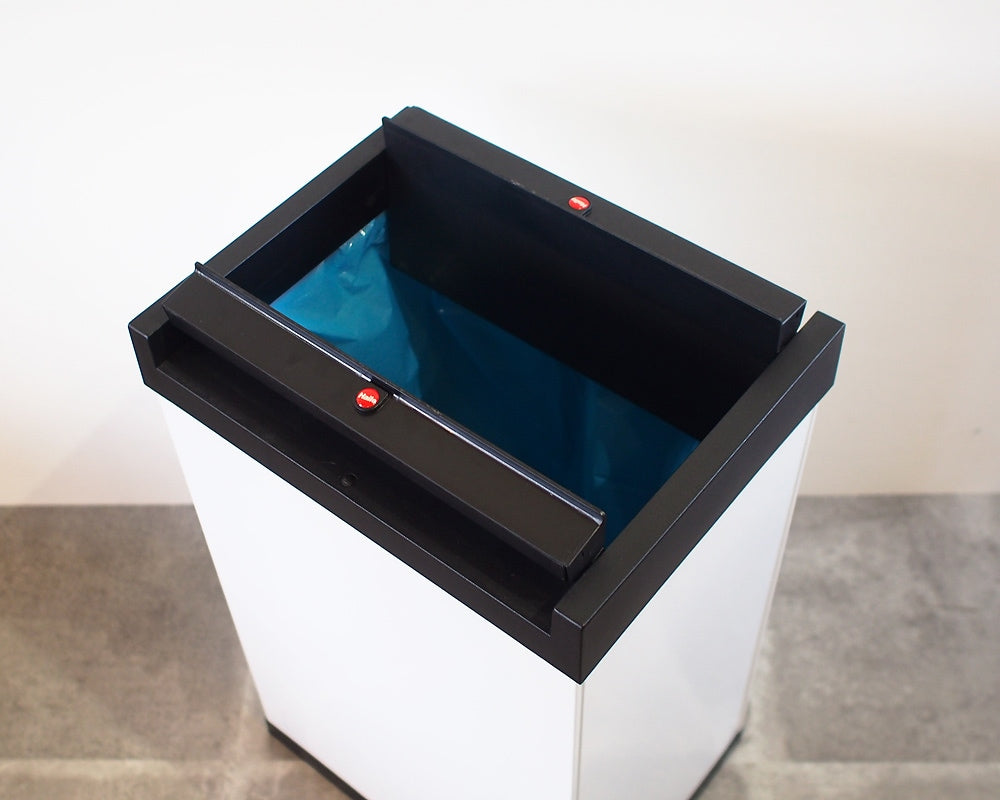 ドイツHailo(ハイロ)社のシンプルかつコンパクト、使い勝手が良く機能的なダストボックス「Big-Box(ビッグボックス)」です。このHailo社のBig-Boxは、極限まで構造をシンプルすることで、大容量でありながら、他の同容量のゴミ箱に比べ、驚くほどコンパクトにデザインされています。コンパクトなボディを活かし、お部屋の空間を有効活用できるように、画期的なフタの構造を開発し、壁面へピタリとつけた状態でフタの開閉が可能となっています。そのため、お部屋の隅を有効活用できたり、分別用にきれいに並べて使用することが可能です。(分別用のシールが付属します)さらに特筆すべきはフタの開閉。本当に驚くほどスムーズで、指先で軽く触れる程度の力でスムーズに開き、また手を離すと自動で元通りに戻ります。また生ゴミなどフタに触れたくない場合には、全開することで開いたまま固定することもできる、正にドイツ製らしい機能的なフタに仕上がっています。付属の赤色のフレームで、中にセットするゴミ袋が表に見えないようになっているなど、細部にまで徹底的に機能に拘ったおすすめのダストボックスです。