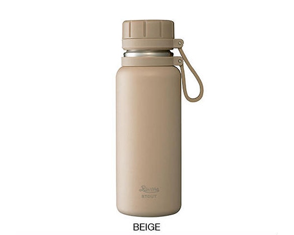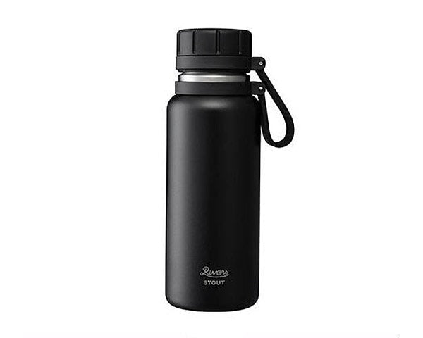 RIVERS(リバーズ)の、頑丈な作りが自慢のタフなボトル「VACUUM FLASK STOUT/バキュームフラスク スタウト」です。アウトドアでの使用を前提として多少の傷やへこみがあっても問題なく使える、そんなシンプルでタフなボトルです。この500mlはいわゆるペットボトルサイズで、水やお茶を入れて毎日の水筒として使ってもいいし、コーヒー専用の水筒としてもちょうど良い大きさ。朝、自分で淹れて夕方までスローに飲む。時々公園でカフェ気分に浸る。そんなスタイルもおススメです。スタウトの特徴は、カラビナを掛けやすいデザインのストラップはフタと繋がっていてドリンクを飲む際に便利です。中栓には2種類の飲み口穴が空いており、猫舌の方は小さい穴から飲むと飲みやすい、という設計になっています。また、保温力向上にも一工夫。ステンレス製真空保温構造という事に加え、真空部分に銅メッキコーティングを施し、輻射熱による熱移動を防ぎ、保温性能UPを実現。熱湯を500mlサイズで6時間後に73℃以上キープ、また冷水では6℃以下をキープする実験結果を得ています。研ぎ澄まされたシンプルなデザイン。是非スタウトを使い込んでみてください。