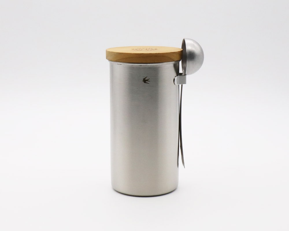 新潟県燕市で製作している GLOCAL STANDARD PRODUCTS /グローカルスタンダードプロダクツ「ツバメ」シリーズのステンレス製キャニスターとコーヒースプーンのセットです。 金属加工の産地の新潟県燕市で製作されたステンレス製キャニスターです。 メジャースプーンが収納できるフック付き仕様で、メジャースプーンが付属します。 チーク材の木蓋は樹脂パッキン仕様なので密封性があり、コーヒー豆の保管に最適で、コーヒー粉約210g、コーヒー豆約200gを保存ができます。