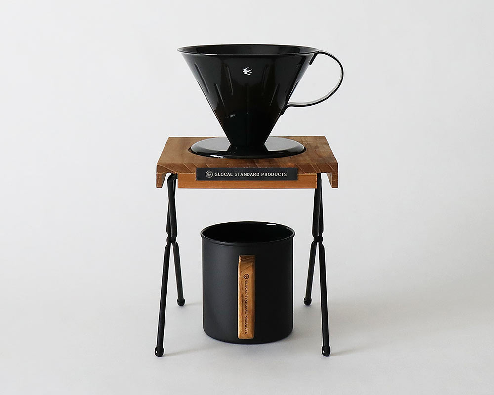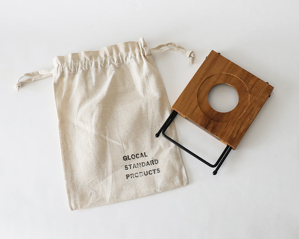 新潟県燕市で製作している GLOCAL STANDARD PRODUCTS /グローカルスタンダードプロダクツのチーク材を使用した持ち運びに便利なコーヒードリップスタンドです。 このドリップスタンドは、脚部分を折りたたむ事ができ収納時にはスリムになりますので、持ち運ぶにも便利です。 スタンドの高さは使用されるサーバーに対応できるように2段階調整が出来るようになっています。 使用されるドリッパーはTSUBAMEシリーズの他ものもにも対応しています。(他社製品をご使用の場合はサイズ確認をお願いいたします。商品によっては合わないものもございます。天板上の円状溝寸法:φ100mm、天板上の穴寸法:φ60mm) 天板はチーク材を使用、専用袋に入っています。ご家庭でのご使用はもちろん、アウトドアなど外へ持ち出す場合にもコンパクトで重宝するドリップスタンドです。