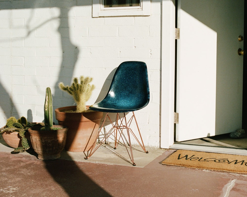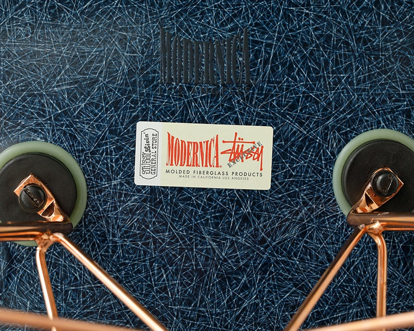 ロサンゼルスを拠点に様々なモダンファニチャーを生み出している「Modernica / モダニカ」と「STUSSY Livin’ GENERAL STORE / ステューシー リヴィン ジェネラル ストア」のコラボレーションが実現した特別仕様のサイドシェルチェアです。 かつてチャールズ・イームズがデザインした「FRP(ガラス繊維強化プラスチック)」を使用したミッドセンチュリーを代表するプロダクト「サイドシェルチェア」がロサンゼルスでデザインされ、生産された椅子である事に注目、オリジナルのサイドシェルチェアを完璧とも言える生産手法により現代へと蘇らせた「モダニカ」の全面協力を得ることで実現したコラボレーションシリーズに「ブロンズメッキ」のエッフェルベース仕様が新たにリリースされました。 1950 年代から稼働している世界唯一の専門機器と、同社が誇る熟練の職人たちが手掛けるサイドシェルチェアに「ステューシー リヴィン ジェネラル ストア」が提案するブロンズメッキのエッフェルベースを別注しました。ダイニングテーブルやワークデスクに最適な座面高の「エッフェルベース」は、かつてミッドセンチュリーと呼ばれた1940〜1960年代にアメリカの一般家庭やオフィス、公共施設など様々な場所で使用されていた通り、現代においても幅広いシチュエーションで活躍します。 [製品のご注意] 50年代の製法を受け継ぎ手作業で製造しているため、造りムラ等がございます。ファイバー繊維の 焦げや若干の異物混入、脚に若干のがたつきがある場合ございます。またスタッキング状態で輸入の為、打ち傷・すり傷・金属部分に劣化等ある場合がございます。これらは不良や交換の対象となり ませんので予めご了承ください。 また納品後は同梱の組立説明書に従ってお客様御自身で組み立てをお願いします。(シェルとベースは4本のネジで固定されています。ドライバーが1本あれば初めての方でも10分程度で簡単に組み立てができます)