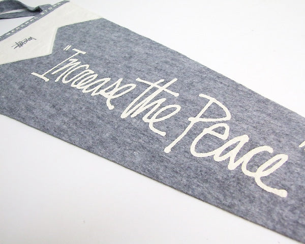 STUSSY Livin’GENERAL STORE の オリジナルペナントです。 元来は船舶で所属やメッセージなどを表すために始まり、アメリカの大学やスポーツなど様々なサインに使われるようになったペナントをSTUSSY Livin’GENERAL STOREではアイコニックなフレーズを載せてインテリアグッズとして提案します。 縦横に飾ることが可能、フェルトなので経年変化も楽しめる一品です。 お部屋の壁面のアクセントにも最適で、USAっぽいお部屋にしたい方に最適なペナントです。