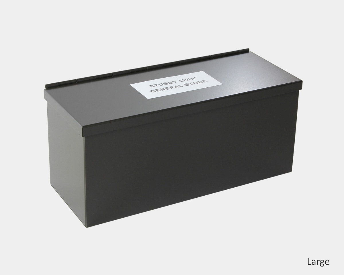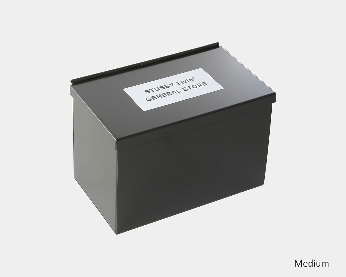 大切なものをしっかり守って収納できる、STUSSY Livin’GENERAL STORE のスチールケースです。 精巧な品質で知られる新潟燕三条の工具箱メーカーに、STUSSY Livin’GENERAL STORE が別注を行なったスチールケースです。 堅牢なスチールで作られたケースは卓上や本棚で、様々な貴重品や道具、写真などの思い出の品を大切に収納することができます。