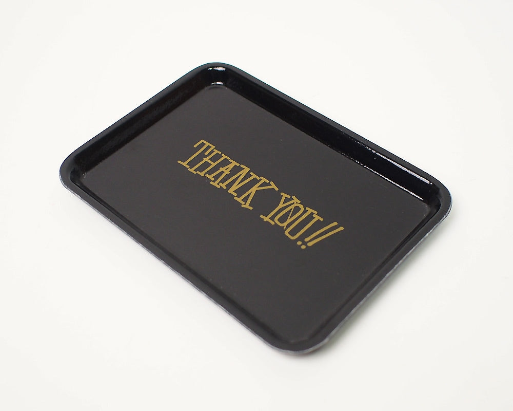 STUSSY Livin’GENERAL STORE が米国CAMBRO社へ別注したFRP製のチップトレイです。 業務用の食器や備品の分野において世界各国で高いシェアを持つ創業1951年の専門メーカーCAMBRO社(本社:米国カリフォルニア)に別注を行ったトレーです。イームズのシェルチェアと同様のFRP(グラスファイバー強化プラスチック)のトレーは、耐久性とデザインを両立させた逸品です。 おなじみのSTUSSYフォントで「THANK YOU」がデザインされておりブラックのトレイにゴールドフォントのインパクトある仕上がりです。 お店などでチップトレイとしては勿論、玄関先の小物トレイとして、来客時のドリンクトレイとして等、様々なシチュエーションで活躍します。