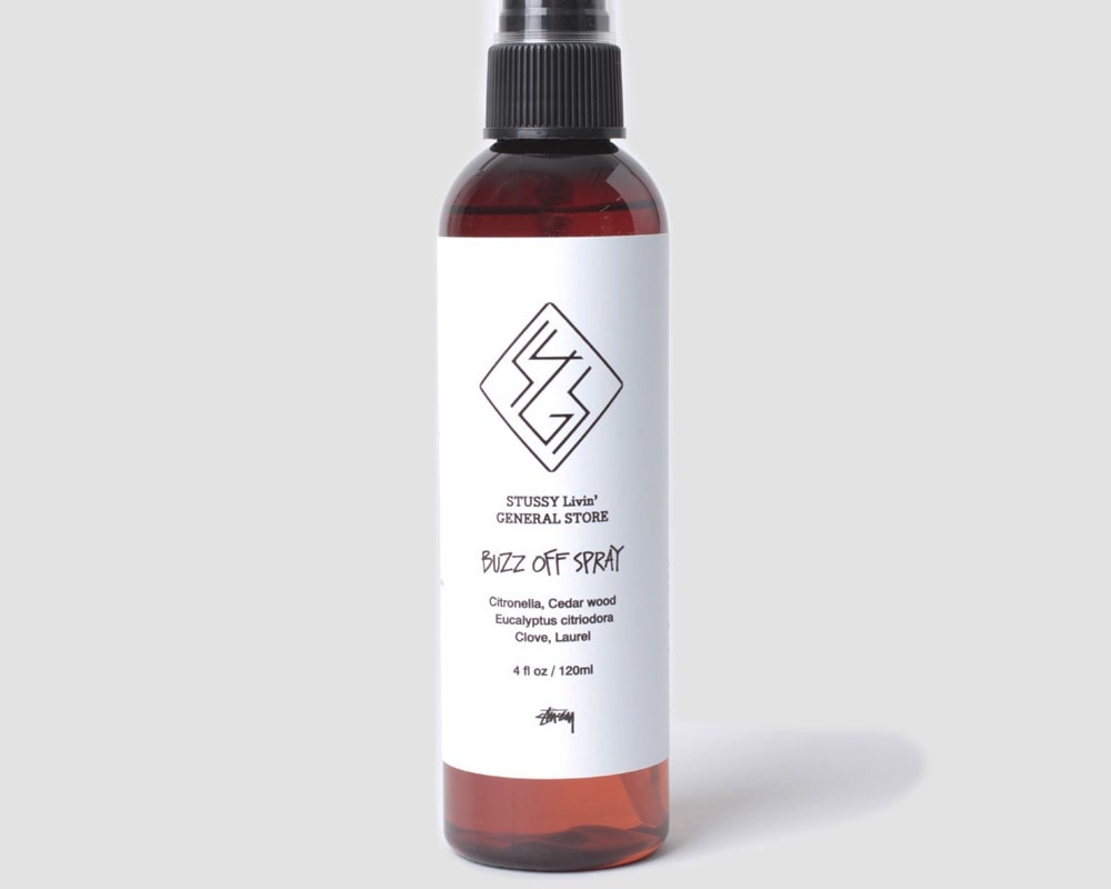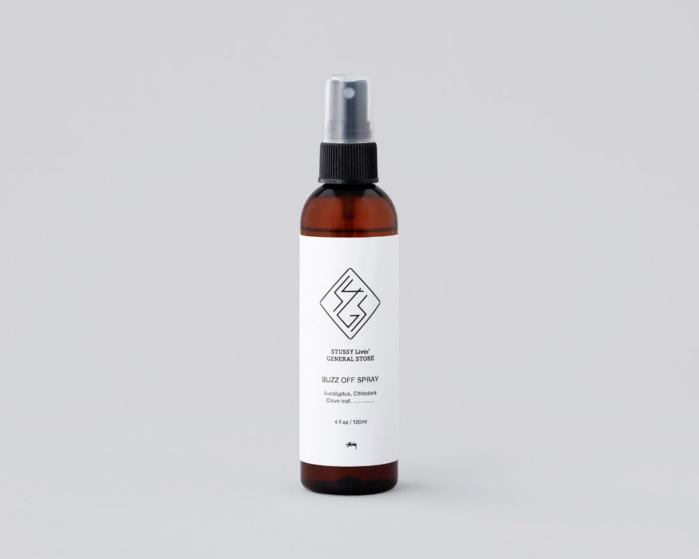 STUSSY Livin’GENERAL STORE の天然素材のみを使った虫除けスプレーです。 ユーカリやシトロネラ、クローブなどのナチュラルなエッセンシャルオイルを独自に配合したオリジナルのバズオフ(虫除け)スプレー。 自然な成分のみを使っているのでお子様やペットへの使用も安心です。