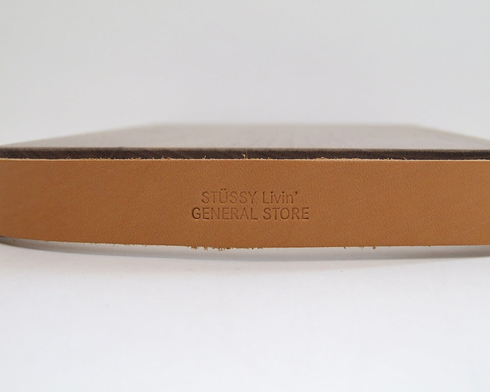 STUSSY Livin’GENERAL STORE のウォルナット無垢材を使用したカッティングボードです。 落ち着いた色合いと重厚な無垢のウォルナット材を使用し、家具職人のRoam松田創意氏が1つ1つ手作業で仕上げたGS特注のカッティングボード。 木の重量感とナチュラルな風合いに加え、壁掛けが可能なレザーのストラップまで経年変化が楽しみな逸品です。