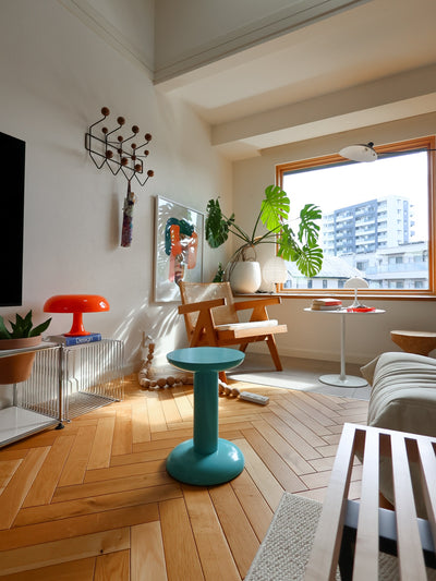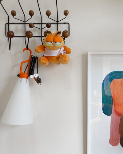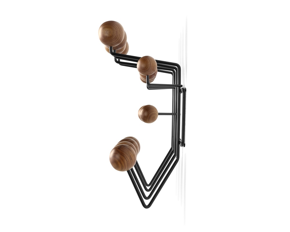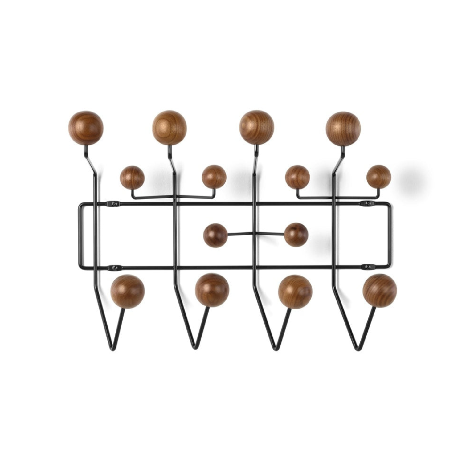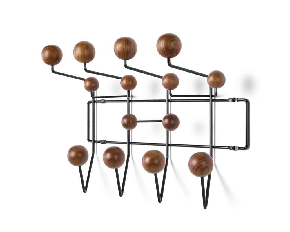 Herman Miller/ハーマンミラー社、イームズデザインのウォールハンガー「Hang It All/ハングイットオール」です。イームズ夫妻/チャールズ&レイ・イームズが考え子供たちが楽しみながら整理整頓できるようにポップなカラーリングとユニークなデザインで、もともとは子供向けにデザインされたハングイットオール。ミッドセンチュリー期らしいデザインは、現代のご家庭やオフィスでも楽しく使っていただけます。フレームはパウダーコート仕上げとなっていて、当時デザインされたのはマルチカラーのボールにホワイトフレームのデザインです。帽子や傘、ジャケット、コート類、スカーフ、リュックサックなど、多少の重みのあるものでもかまわず何でも掛けることができ、実用性にも優れています。
