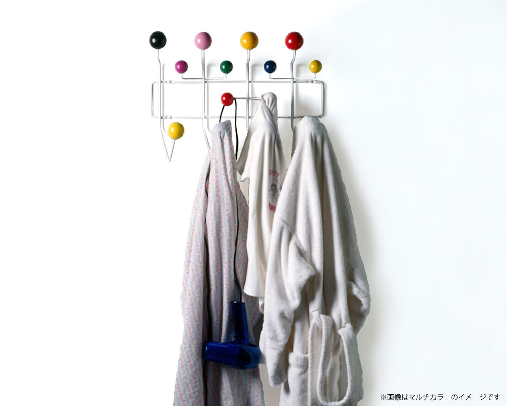 Herman Miller/ハーマンミラー社、イームズデザインのウォールハンガー「Hang It All/ハングイットオール」です。イームズ夫妻/チャールズ&レイ・イームズが考え子供たちが楽しみながら整理整頓できるようにポップなカラーリングとユニークなデザインで、もともとは子供向けにデザインされたハングイットオール。ミッドセンチュリー期らしいデザインは、現代のご家庭やオフィスでも楽しく使っていただけます。フレームはパウダーコート仕上げとなっていて、当時デザインされたのはマルチカラーのボールにホワイトフレームのデザインです。帽子や傘、ジャケット、コート類、スカーフ、リュックサックなど、多少の重みのあるものでもかまわず何でも掛けることができ、実用性にも優れています。