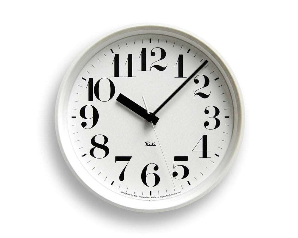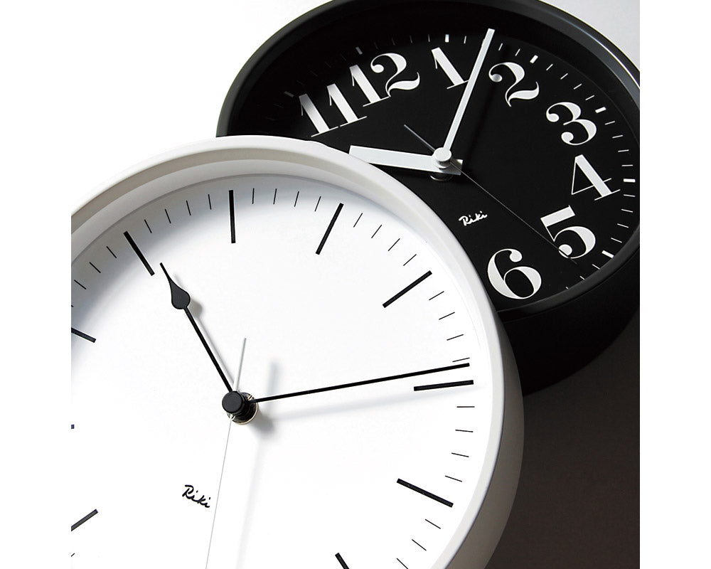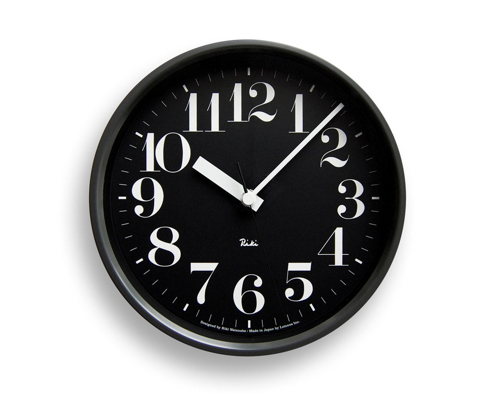 渡辺力デザインのモノトーンでクールな印象のスチールフレームの掛け時計「リキ スチール クロック」です。リキクロックにスチールフレームを使用した、直径200mmの程良いサイズの電波時計です。モノトーンでマットな質感、厚みのあるフレーム、裏面の漢字サイン、盤面と同色の細い秒針、見やすいフォント、時針分針の太さ・・・など細部まで拘りがみられる仕上がりです。の定評ある電波式ムーブメントを搭載していますので、時間を合わせの必要がなく、常に正確な時間を刻みます。無駄をそぎ落としたシンプルなフォルムや質感、見やすい文字盤など新築祝いなどのプレゼントに最適です。[電波時計とは] 福島と九州から発信されている日本の標準時刻の電波を受信して、常に正確な時間を刻みます。そのため時計に時間を合わせるダイヤルがありません。はじめに電池を入れてしばらくすると秒針が不規則にぐるぐる回りはじめ、正確な時刻に到達すると同時に通常の速度で時間を刻み始めます。