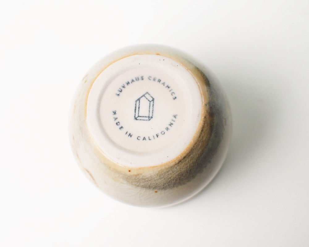 「Made by hand for your hand」を標榜に掲げ、カリフォルニアはバークレーを拠点に活動する「Luvhaus Ceramics」のタンブラーです。このマグ(タンブラー)はあなたの手の平に持たれることを考えデザインされています。粘土から形状を試行錯誤し、朝から夜まで、仕事場や工房などあらゆるルーティンで活躍するタンブラーです。この特徴のあるマグの形状は手のひらでしっかりとつかみやすくなっており、上部のリブは手から滑り落ちないよう考えられています。 また、お茶やコーヒーで器自体が熱くなってしまった場合の持ち手にもなります。ひとつひとつ手作業で作られたタンブラーは同じ種類でも、大きな個体差が生まれ、ハンドメイドならではの愛着の持てる作品に仕上げっています。