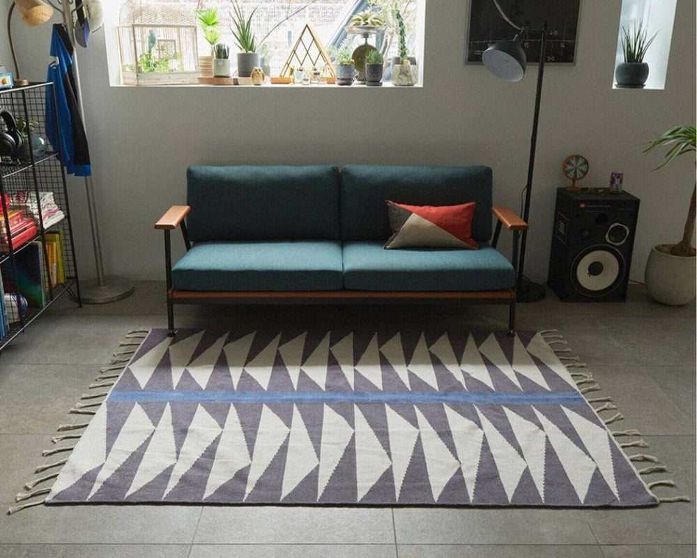 journal standard Furniture(ジャーナルスタンダードファニチャー)のモダンなデザインの「PITTSBURG RUG/ピッツバーグラグ」です。journal standard Furniture らしい配色と三角形の配列がリズミカルなデザインのラグです。シャープなデザインですが素材のコットンの手触りとフリンジがやわらかい印象にしてくれます。ヴィンテージ家具との相性もよく、ソファ前のラグとして使用する場合、サイズは「W200」が3シーター、「W160」が2シーターに最適な大きさです。敷くだけで空間のアクセントになる1枚です。