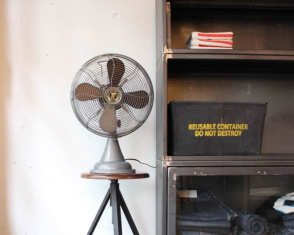 毎年人気の中央にオリジナルロゴの入ったjournal standard Furniture/ジャーナルスタンダードファニチャーの扇風機「JSF FAN」です。アンティークな雰囲気がインテリアの一部としても大活躍の扇風機です。風量は3段階で調節ができ、首振り機能付きで、パーツもクラシカルな雰囲気に仕上がっています。SILVER/シルバーはスチール素地にクリア塗装、BLACK/ブラックはハンマートーン風のザラッとした仕上げになっており、この2色からお選びいただけます。サーフスタイルやビンテージスタイルがお好きな方におすすめで、リビングやダイニングなど、様々なシーンで活躍すること間違いなしのアイテムです。小型なので場所を選ばず、床だけでなくテーブルに置いたりしてもよく、サーキュレーター(空気循環機)としての使用も可能です。