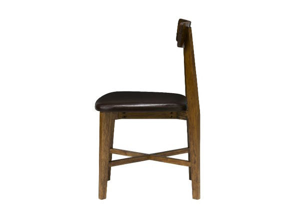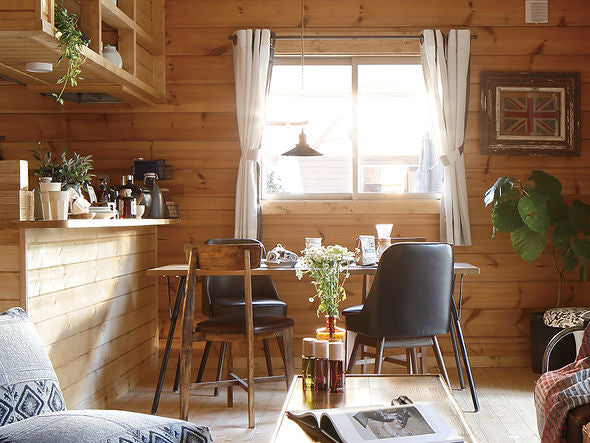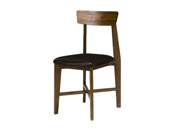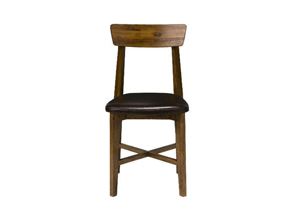 クロスになった脚部が特徴的な、ロングセラーとなっているダイニングチェア。比較的柔らかいゴムの木(ラバーウッド)の無垢材を使っているため、なめらかな肌触り。合皮製シートはメンテナンスがしやすく、小さなお子様がいるご家庭や店舗などでも気負わずにお使いいただけます。