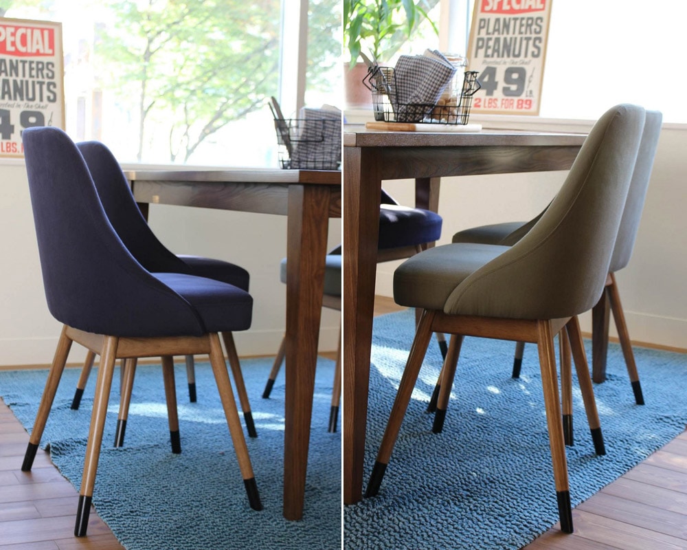 クラシカルでスタンダードなデザインのチェアを使いやすいサイズ感にリデザインしたjournal standard Furniture(ジャーナルスタンダードファニチャー)「BOWERY CHAIR(バワリーチェア)」のネイビーファブリック仕様です。包み込まれるようなシェル構造が特徴の「BOWERY CHAIR」は 快適な座り心地と高いデザイン性、質感を両立したチェアになります。US.NAVYの艦艇搭乗員用のジャケットとして支給されていたN-1デッキジャケット。1944年より1年だけ採用されたネイビーカラーをイメージし、BOWERY CHAIRに取り入れられています。羊の毛が入ったケンピ生地をコットンなどで再現した張地は、他にはないファブリックチェアとなっています。