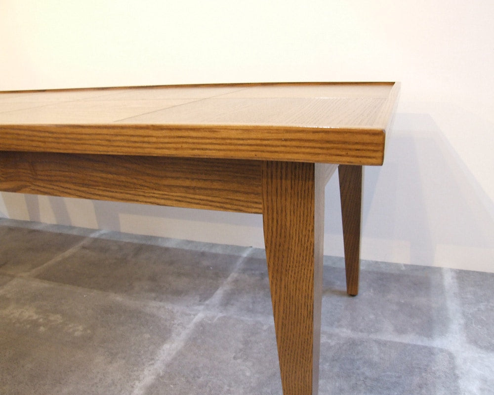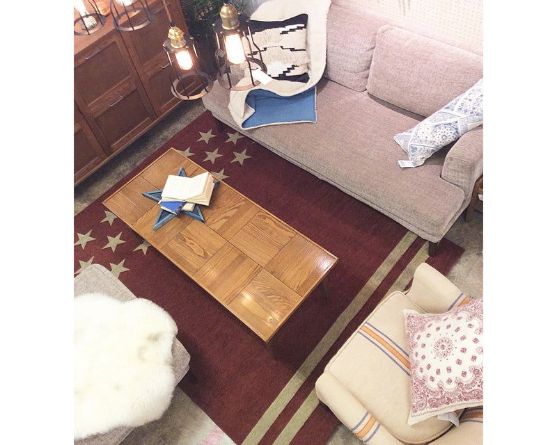 journal standard Furniture(ジャーナルスタンダードファニチャー)のBOWERY(バワリー)シリーズのローテーブル「BOWERY COFFEE TABLE/バワリーコーヒーテーブル」です。古き良き時代の工場や学校の床に使われていた細工をモチーフにデザインしたコーヒーテーブルです。スタンダードなデザインながら、天板は木目の方向を90度変えた寄木になっている為、表情の面白さと同時に反りを軽減する効果もあります。JSKソファとの相性は抜群で、無垢材ならではの木目の美しさを目で見て感じることができる、こだわりの詰まったテーブルです。
