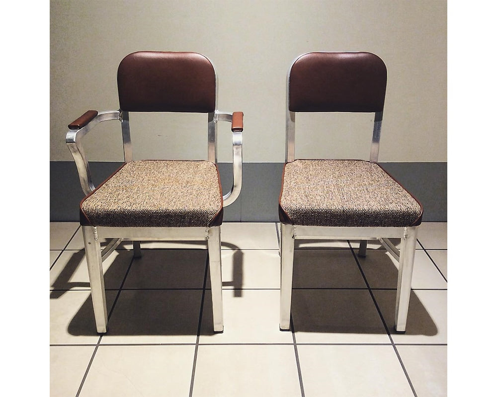 journal standard Furniture(ジャーナルスタンダードファニチャー)で初のアルミフレームを使用したファニチャー「MORGAN CHAIR(モルガンチェア)」です。US.Militaryで60〜70年代に生産されていたチェアを元に、journal standard Furnitureがリデザインしたチェアです。アルミ独特の素材感を楽しんでいただけるように、あえて仕上のクリア塗装をせず加工傷や溶接跡を残したデザインにしています。また、デザインだけでなく、背面と座面の角度と幅など座り心地を緻密に設計され、長時間使用でも疲れにくくなっているのでデスクチェアとしてもおすすめです。ファブリック、PVC(合成皮革)とアルミの組み合わせは、アメリカのダイナーを思わせる雰囲気で、同シリーズにラインナップされているアーム付きとコーディネートも可能です。