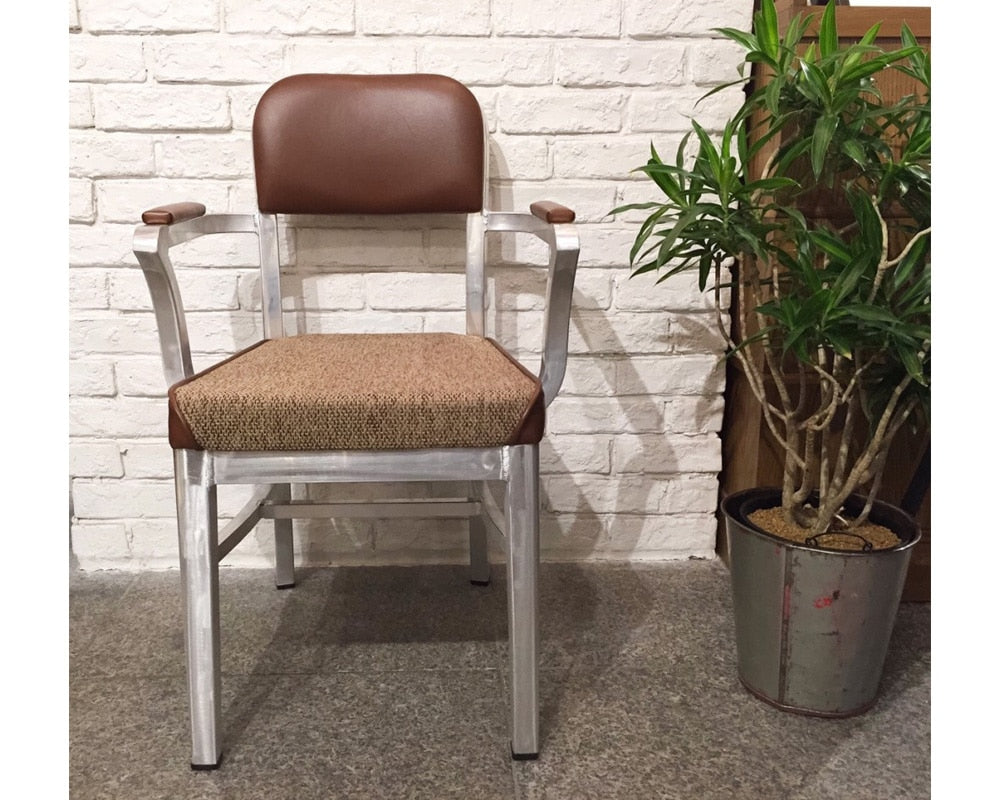 journal standard Furniture(ジャーナルスタンダードファニチャー)で初のアルミフレームを使用したファニチャー「MORGAN CHAIR ARM(モルガンチェア アーム)」です。US.Militaryで60〜70年代に生産されていたチェアを元に、journal standard Furnitureがリデザインしたチェアです。アルミ独特の素材感を楽しんでいただけるように、あえて仕上のクリア塗装をせず加工傷や溶接跡を残したデザインにしています。また、デザインだけでなく、背面と座面の角度と幅など座り心地を緻密に設計され、長時間使用でも疲れにくくなっているのでデスクチェアとしてもおすすめです。ファブリック、PVC(合成皮革)とアルミの組み合わせは、アメリカのダイナーを思わせる雰囲気で、同シリーズにラインナップされているアーム無しとコーディネートも可能です。
