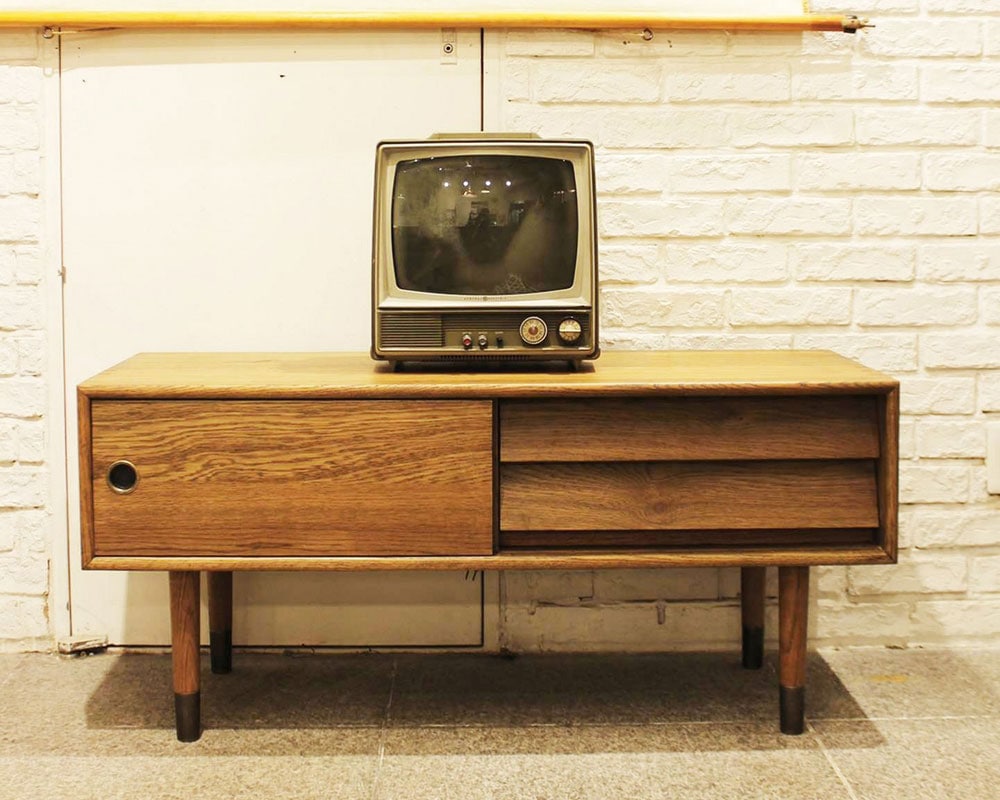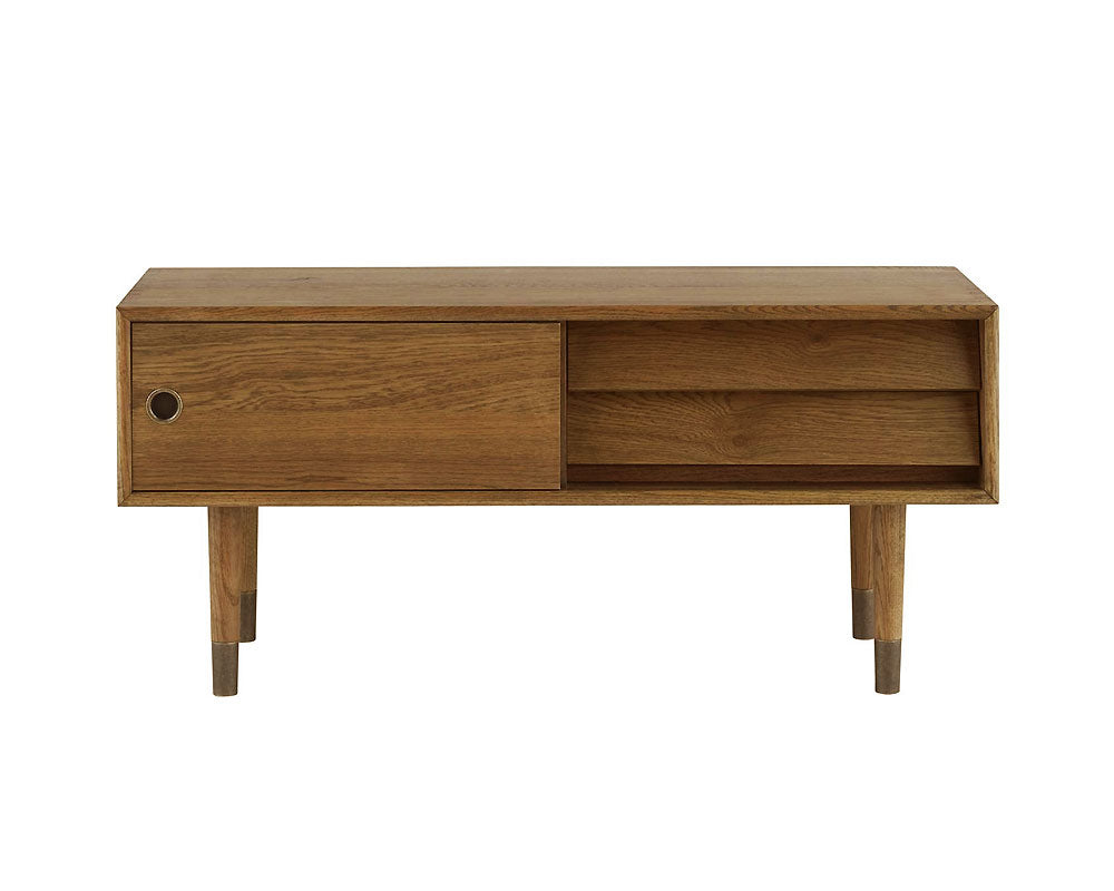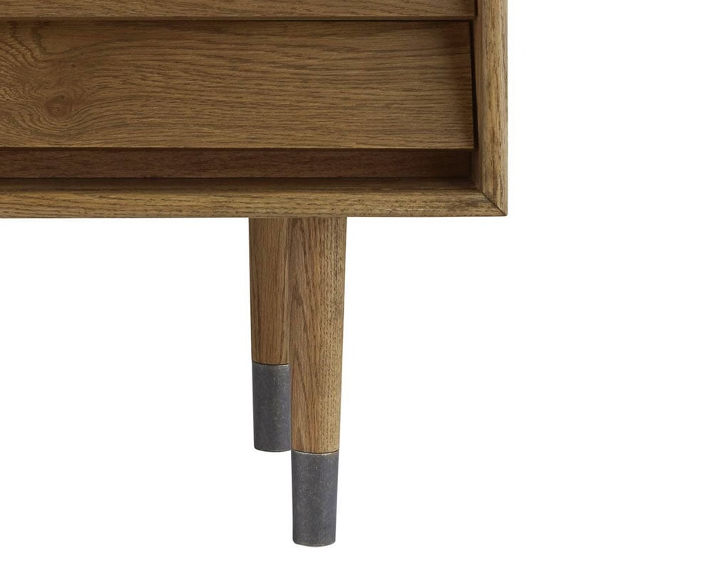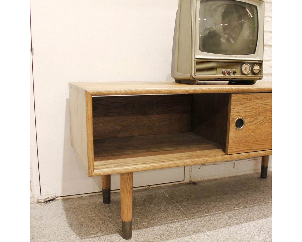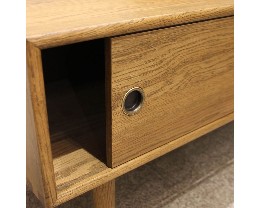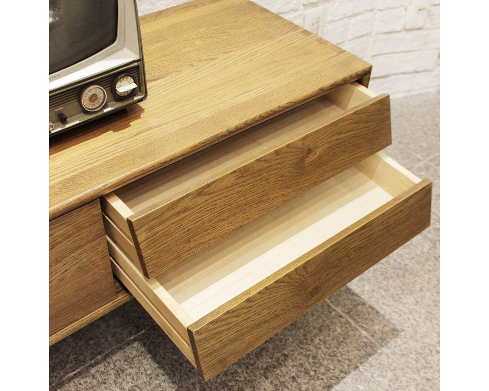 journal standard Furniture/ジャーナルスタンダードファニチャーのOLSEN TV BOARD/オルセンテレビボードです。オーク材とビンテージ感たっぷりのパーツを組み合わせた、journal standard Furniture/ジャーナルスタンダードファニチャーらしいユニセックスなデザインになっています。左はスライド式の扉でオープンに収納が可能。右は上下2段の抽斗ですのでかさばりがちなコードやゲーム機の収納などにおすすめです。全面に使用したオーク材は木目美しく、経年変化も楽しんでいただけるテレビボードになっています。OLSEN/オルセンシリーズは、他にサイドボードやキャビネットなども収納アイテムがラインナップされていて、同シリーズでのトータルコーディネートも可能です。