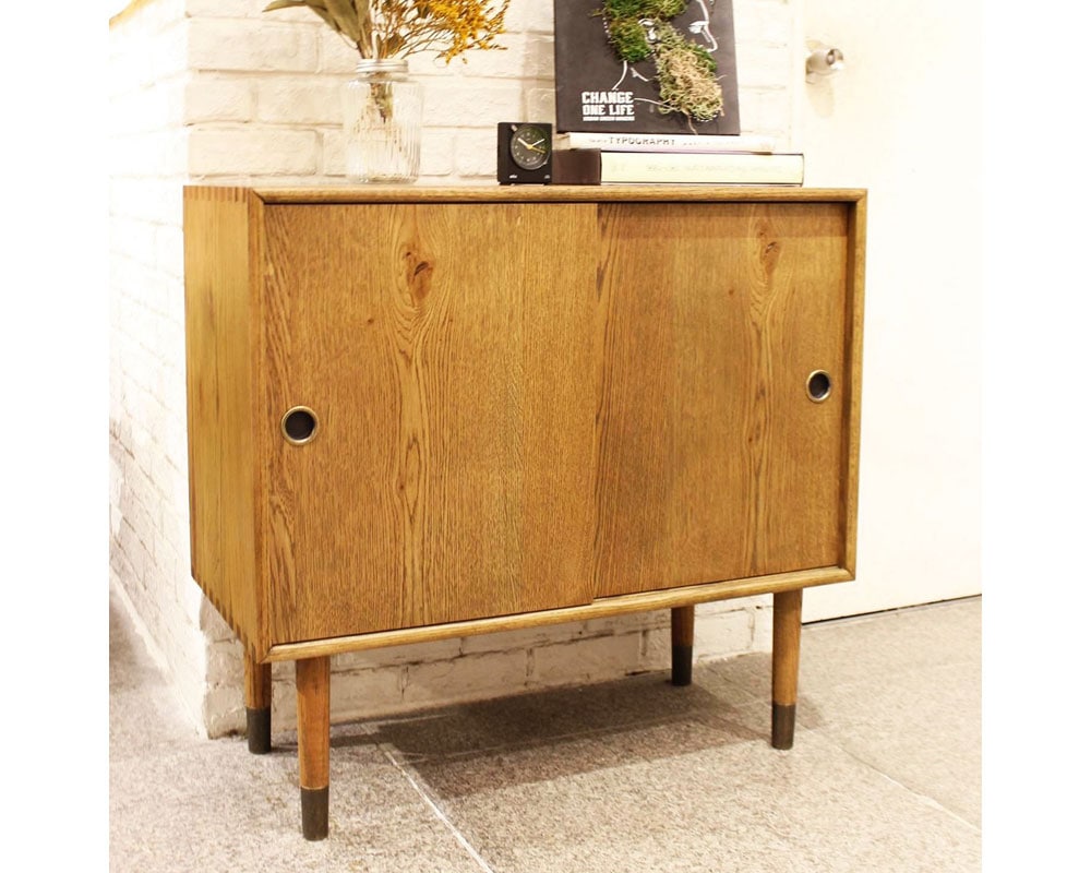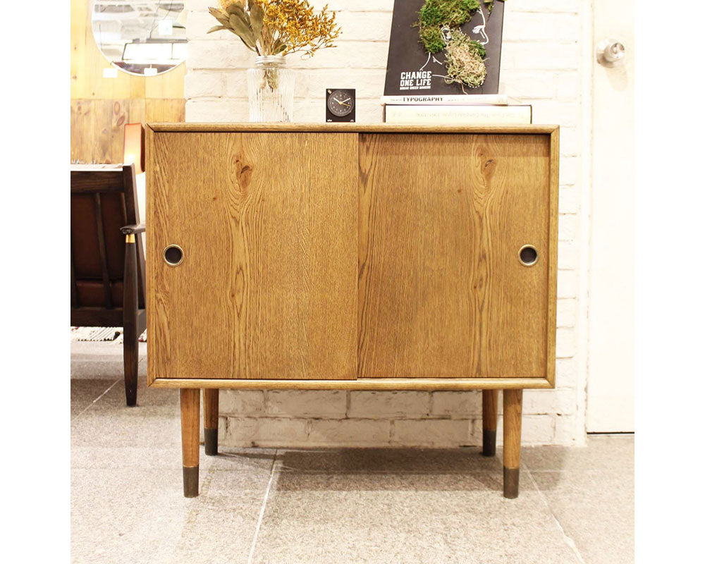 journal standard Furniture/ジャーナルスタンダードファニチャーのOLSEN SIDE BOARD/オルセンサイドボードです。オーク材とビンテージ感たっぷりのパーツを組み合わせた、journal standard Furniture/ジャーナルスタンダードファニチャーらしいユニセックスなデザインになっています。左右それぞれ棚板が1枚付属していて、計4箇所の収納スペースを有しています。お気に入りのレコードや本はもちろん、衣類の収納などにも最適で、キッチンやリビングシーン、ベットシーンの収納に活躍します。全面に使用したオーク材は木目美しく、経年変化も楽しんでいただけるテレビボードになっています。OLSEN/オルセンシリーズは、他にTVボードやキャビネットなども収納アイテムがラインナップされていて、同シリーズでのトータルコーディネートも可能です。