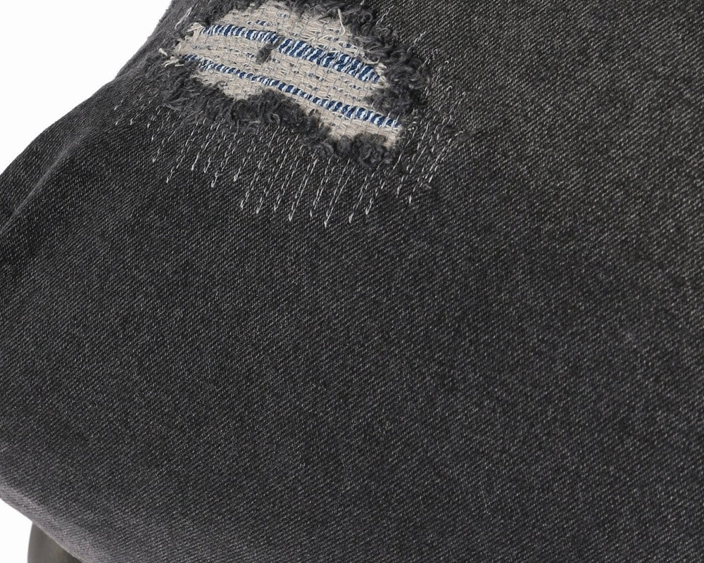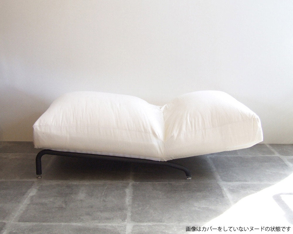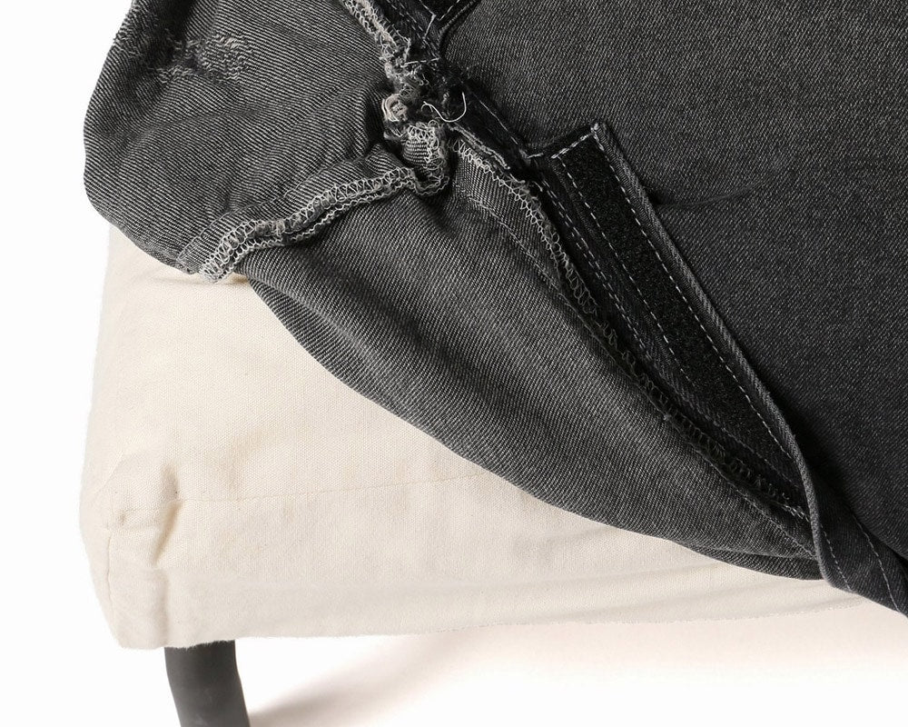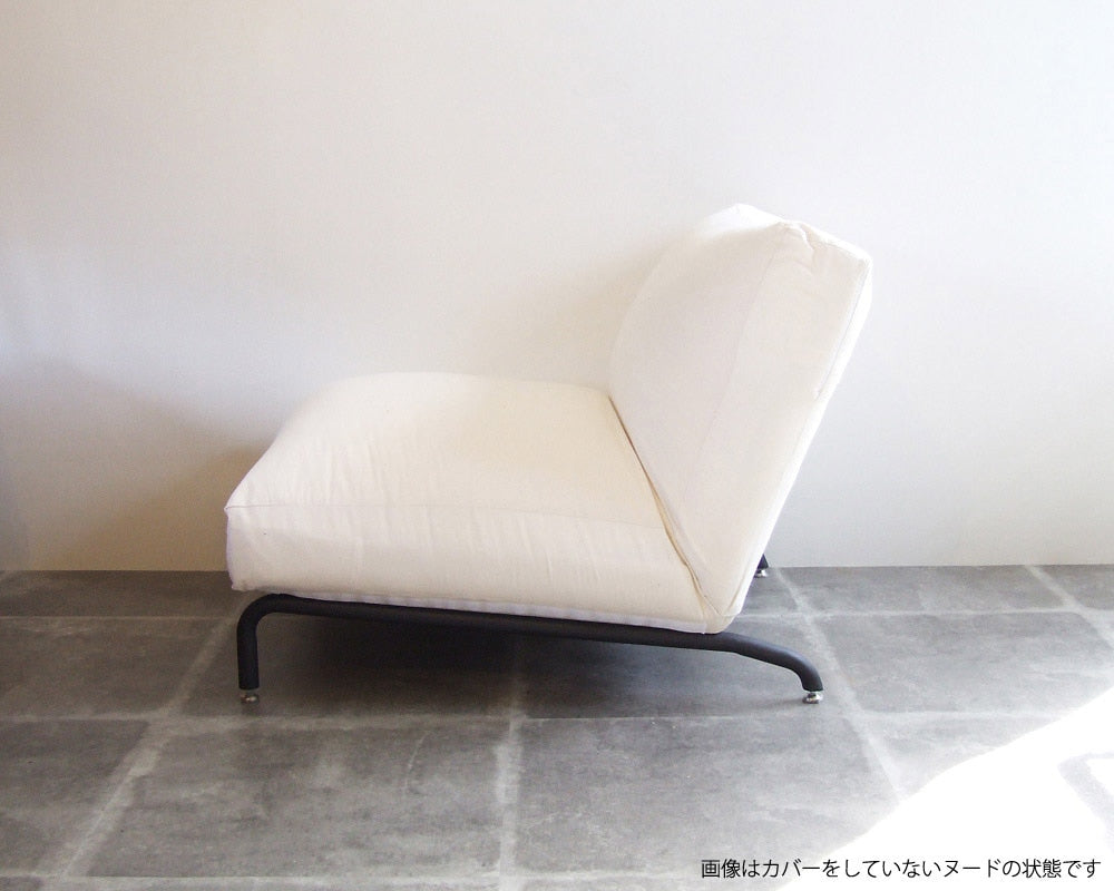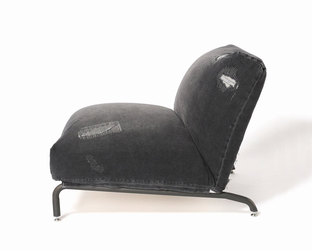 journal standard Furniture(ジャーナルスタンダードファニチャー)のカバーリングタイプのイージーチェア「RODEZ CHAIR 」の2シーター「RODEZ SOFA/ロデソファ」。カバーはブラックデニムにダメージ加工を施しました。JSFで人気の「RODEZ CHAIR/ロデチェア・RODEZ SOFA/ロデソファ」。幅広のシート、低いシートハイに沈み込むクッションのゆったりとした作りで、フカフカの座り心地が癖になりそうな逸品です。シートは5段階にリクライニングしますので、ゆったりとくつろぐことができます。また、アパレルメーカーらしく、季節によってどんどん新作カバーをリリース。洋服を着替える感覚で、別売のカバーを季節によって変えていくことができます。脚部は、無骨な雰囲気のスチールパイプで、アジャスターが付いていますので、床にきちんと安定させることができます。カバーはユーズド加工を施したデニム生地に随所に裏当てをしてダメージ加工を施していて、最初からヴィンテージのような風合いでお楽しみいただけます。アパレルメーカーが手掛けているだけにユーズド加工にも縦落ちなど、他のメーカーにはできないこだわりが感じられ、お部屋にあわせやすく、女性にもお勧めできるカバーで、加工を施しているので柔らかい肌触りで、通年ご使用いただけます。座り心地抜群なこのRODEZ CHAIRで読書にふけってみてはいかがでしょう。