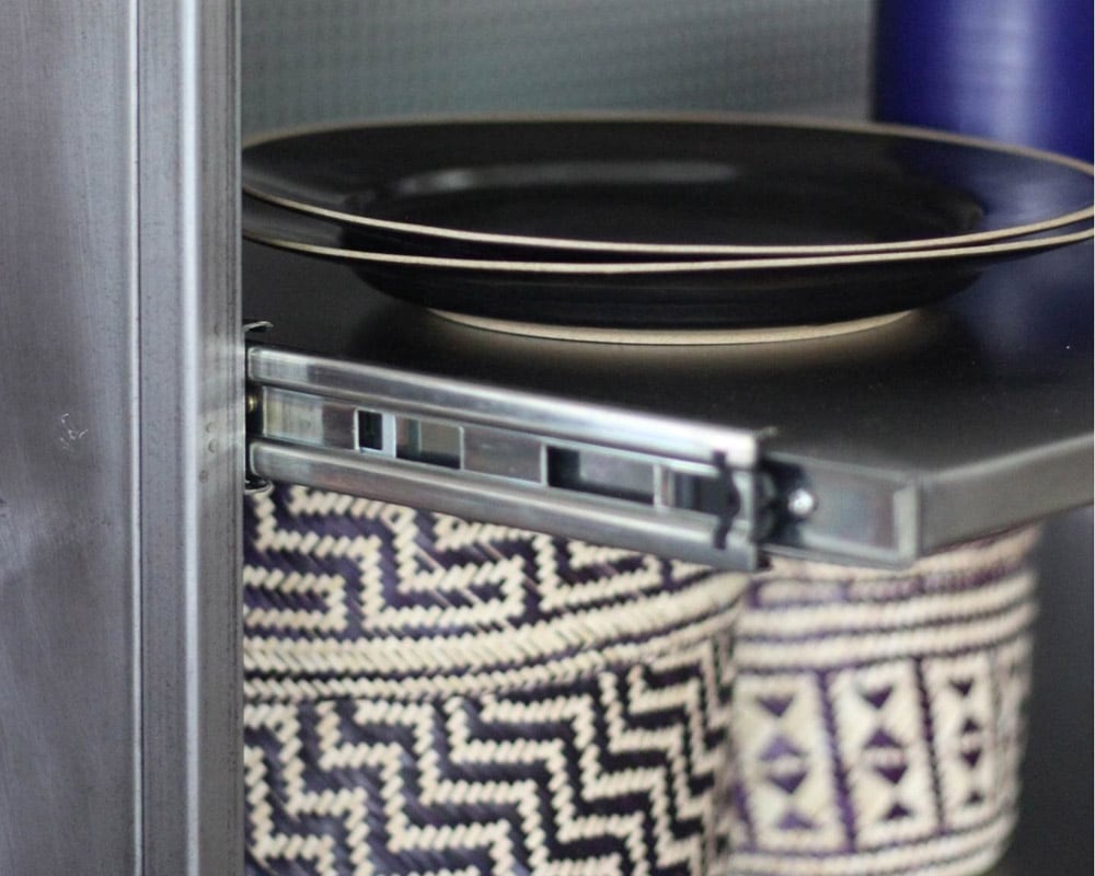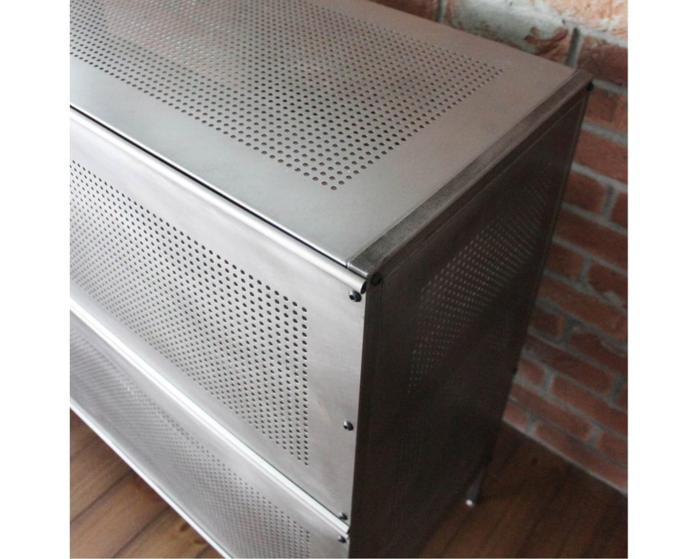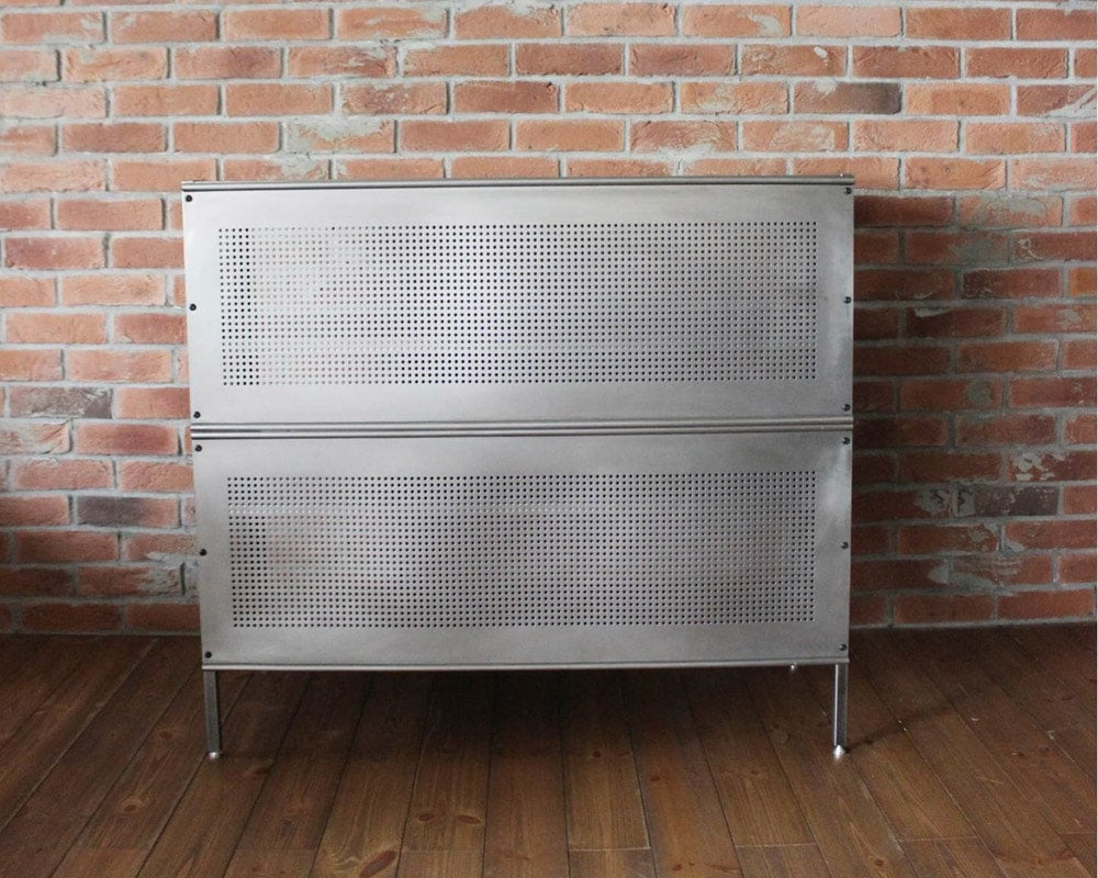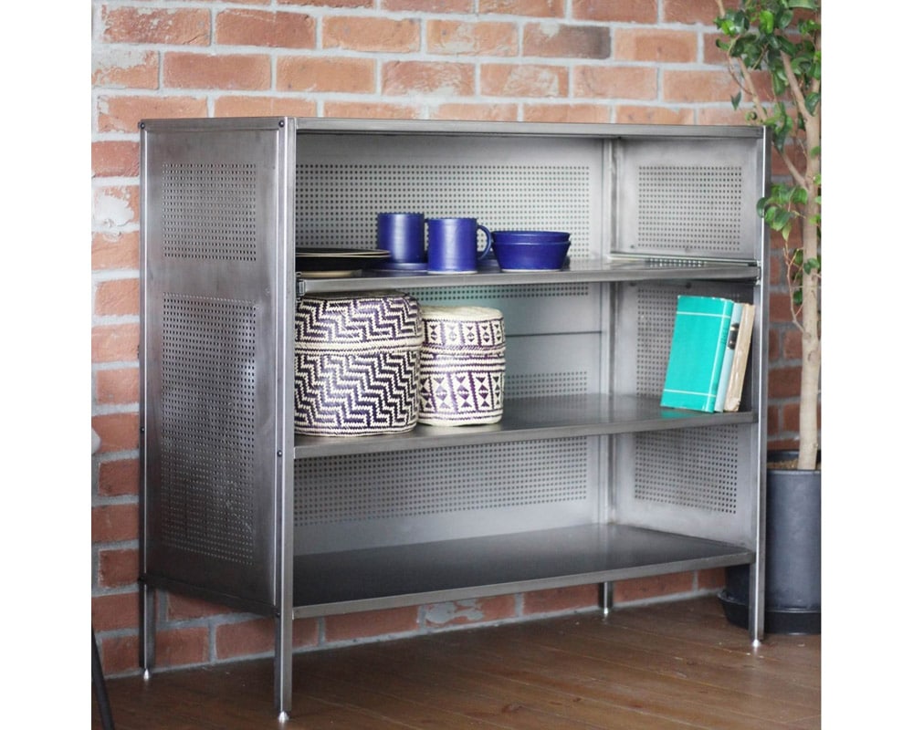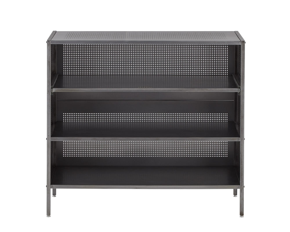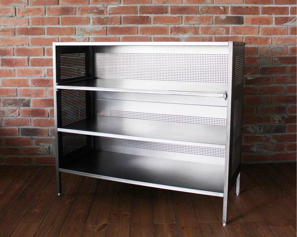 業務用のシェルフをイメージしてデザインされたjournal standard Furniture(ジャーナルスタンダードファニチャー)の「ALLEN Steel Shelf(アレン スチールシェルフ)」の無塗装仕様です。店舗や工場などで使用されている什器をイメージしたシェルフで、インダストリアルからモダン、オールドアメリカな空間まで、幅広く合わせることが出来る万能シェルフです。上段の棚板はスライド式になっている為、奥に収納したものが取りやすくデザイン。奥にしまって取り出しにくい物、箱類で取り出さなくても蓋を置けるとき・・・非常に便利な機能です。また、本体はスチールなのでマグネットでメモやお気に入りのポストカードと留めてあけたり、パンチング部分にフックをとりつけ、ショッピングバッグをかけておいたり、アイデア次第で格好良く、機能的にお使いいただけます。あえて塗装をせず、スチールの素材感を大切にしたシェルフで、年月を経て多少の錆がでたり変化が楽しみです。「何にでも合わせやすく、合わせる物によって部屋のテイストを選ばない」そんな商品に仕上がっております。
