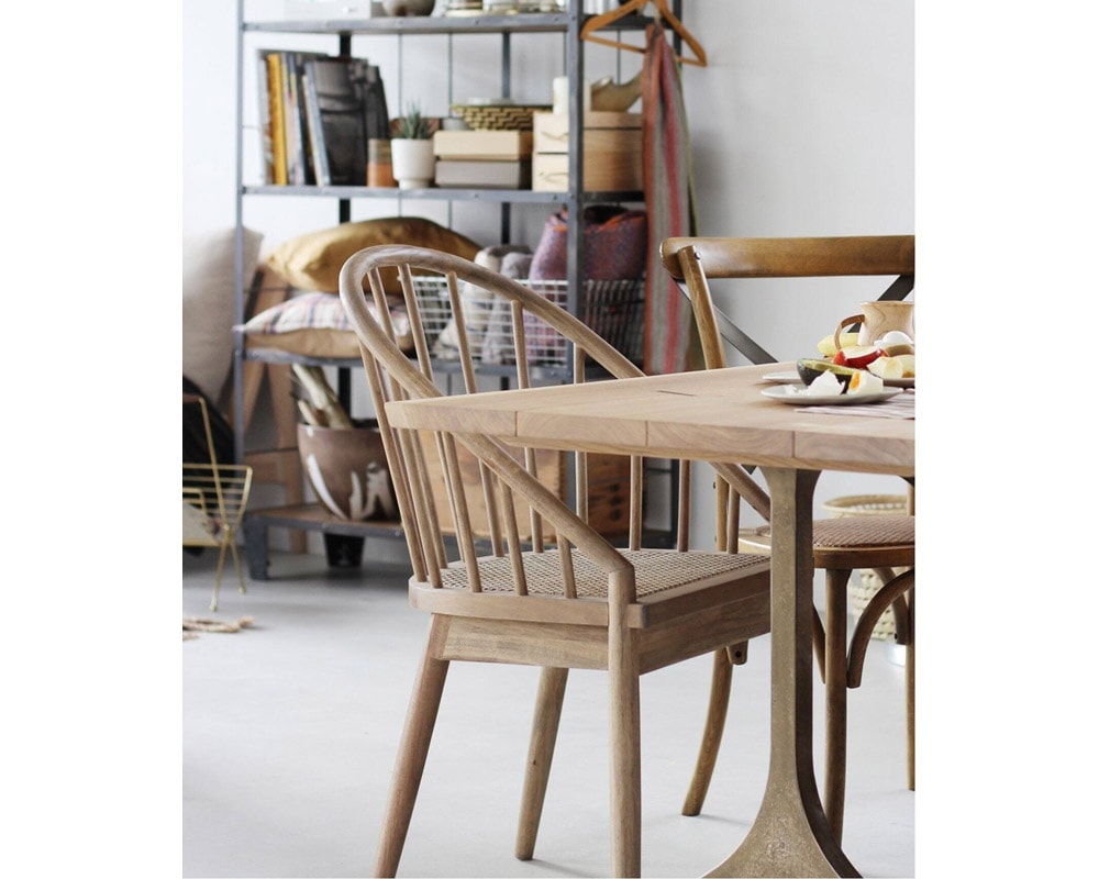座面にラタンを使用し、軽快で繊細さのあるデザインの、journal standard Furniture(ジャーナルスタンダードファニチャー)の「GIORGI CHAIR/ジョルジチェア」です。大きな曲線をいかしたスポークチェア。座面にはラタンを使用し、北欧家具のような佇まいです。ライトブラウンとナチュラルカラー2色のカラー展開でjournal standard Furniture・ジャーナルスタンダードファニチャーらしいヴィンテージテイストにも良く合うデザインに仕上がっています。ヴィンテージテイストにも、ナチュラルやモダンな家具とも相性の良いデザインです。