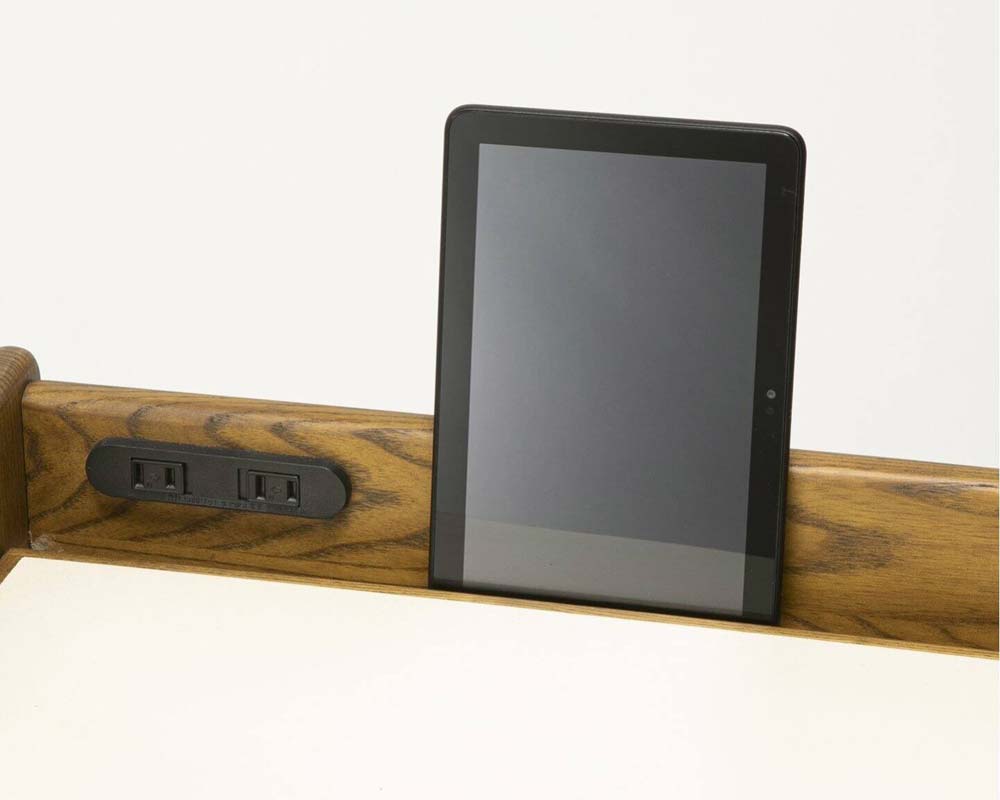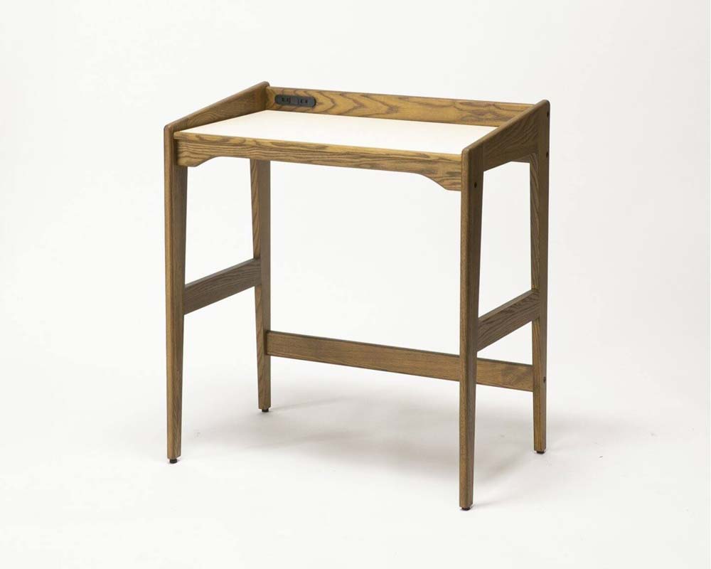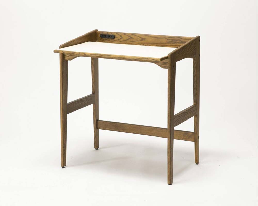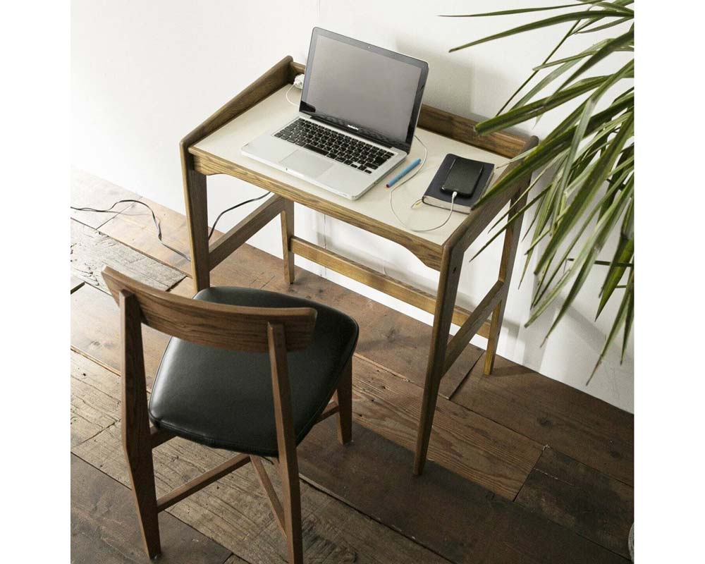シンプルなデザインながら機能性も兼ね備えた、journal standard Furniture(ジャーナルスタンダードファニチャー)のデスク「ALVESTADESK/アルベスタデスク」です。機能家具としてコンセント付きのスマートなデザインで、デザインフォルムは北欧スウェーデンのヴィンテージのテーブルからヒントを得ています。天板が最大120mmまで手前にスライドして可変でき、好きな位置で固定できる仕様になっています。固定方法は裏からのローレットネジ、工具無しで手締めで行えます。天板をスライドすることにより天板奥に出来た溝に、携帯電話やタブレット、ミラーや子供の絵本など様々なものを立てかけられます。好きな位置で可変できるため、立てかけるものの厚みも選ばず、立てかけた際の角度も自由自在に変更することができます。