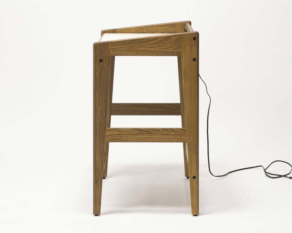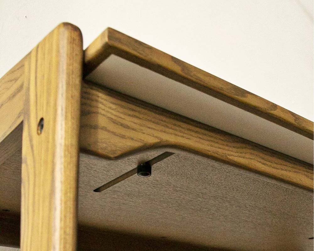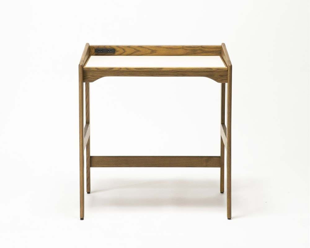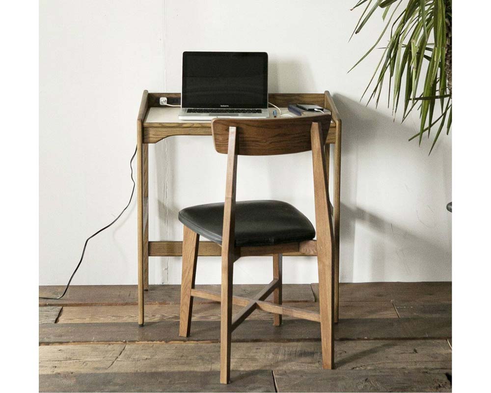 シンプルなデザインながら機能性も兼ね備えた、journal standard Furniture(ジャーナルスタンダードファニチャー)のデスク「ALVESTADESK/アルベスタデスク」です。機能家具としてコンセント付きのスマートなデザインで、デザインフォルムは北欧スウェーデンのヴィンテージのテーブルからヒントを得ています。天板が最大120mmまで手前にスライドして可変でき、好きな位置で固定できる仕様になっています。固定方法は裏からのローレットネジ、工具無しで手締めで行えます。天板をスライドすることにより天板奥に出来た溝に、携帯電話やタブレット、ミラーや子供の絵本など様々なものを立てかけられます。好きな位置で可変できるため、立てかけるものの厚みも選ばず、立てかけた際の角度も自由自在に変更することができます。