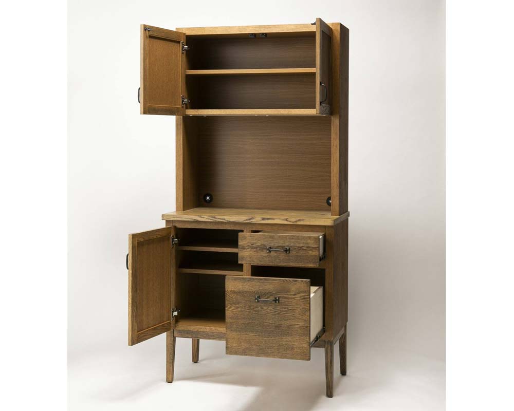 「隠す」場所から「集う」ところにかわったキッチンへの拘りをこめた、journal standard Furniture/ジャーナルスタンダードファニチャーの「CHRYSTIE KITCHEN BOARD/クリスティキッチンボード」の新型2ndです。カウンターにはあえてレンジをおかずにブレンダ—やミキサー、コーヒーメーカーなど毎日使うけど、使い終わったら隠したいものを置くのにぴったりです。扉や抽斗には強く締めてもゆっくり閉まるソフトクローズ機能を付けました。お子様がいらっしゃるご家庭でも安心してお使い頂けます。レンジやケトルなど蒸気が出るものを置く庫内上部には、モイスを付けて耐熱、消臭効果をしています。吊戸棚には耐震ラッチを設置、壁面と固定できる金物も付属しています。見た目はヴィンテージライクなのに機能はハイスペック。収納力や安全面も抜群で、オプションのコンテナを下に奥とさらに収納力アップします。
