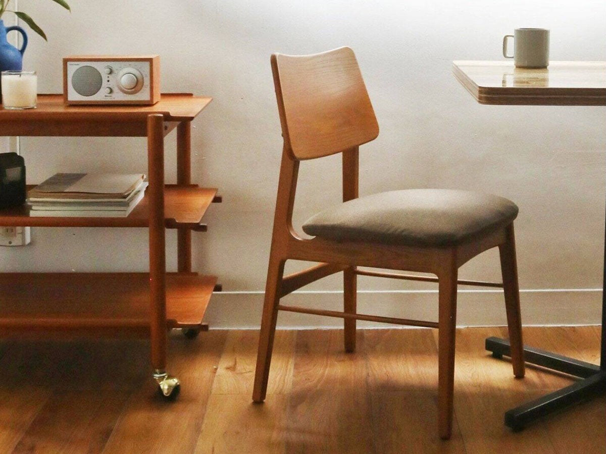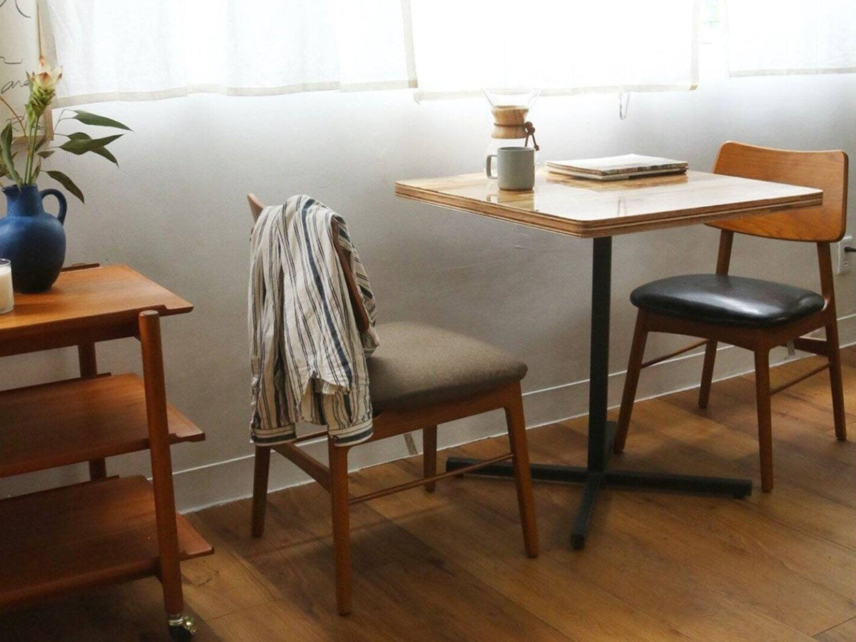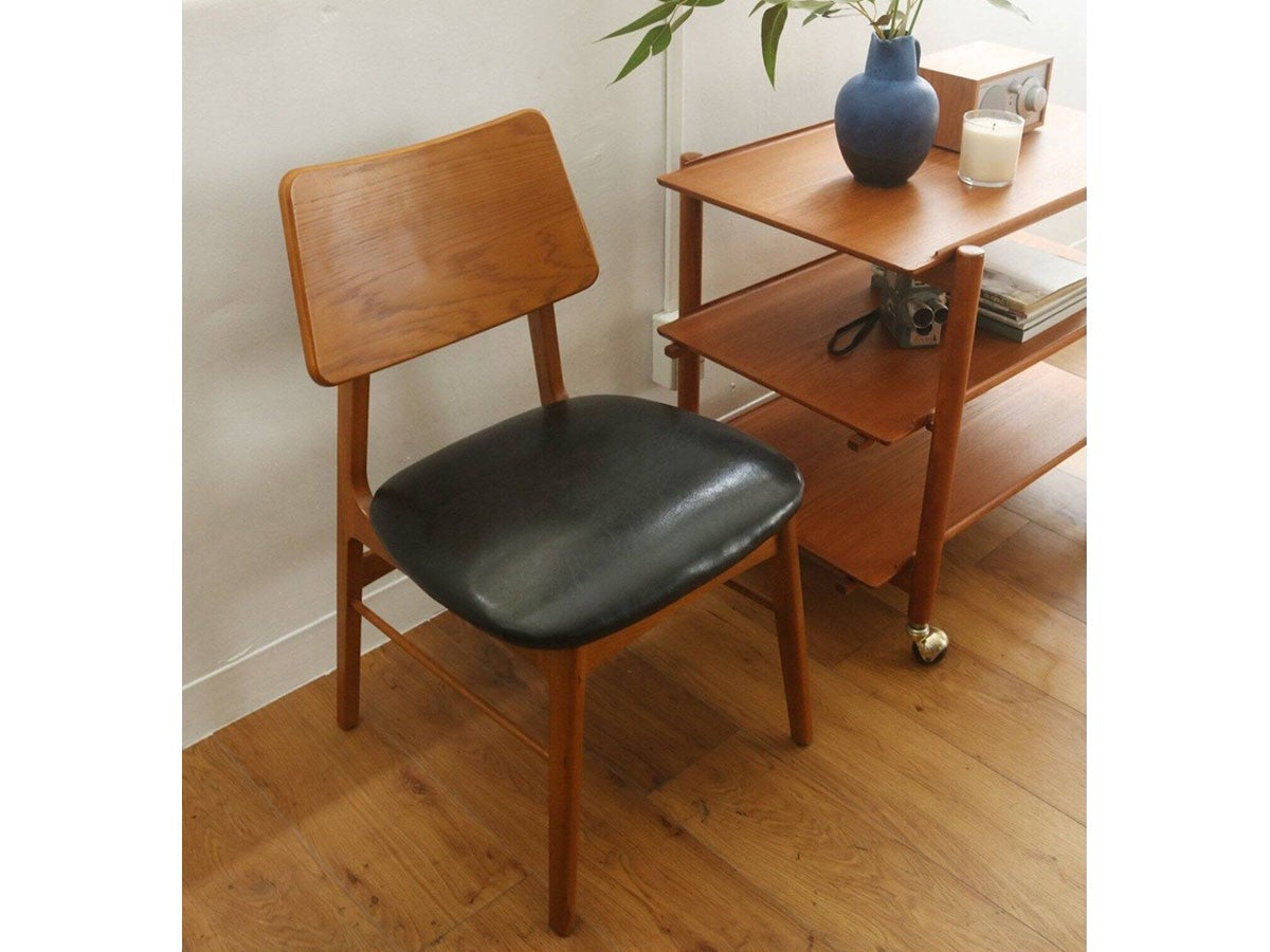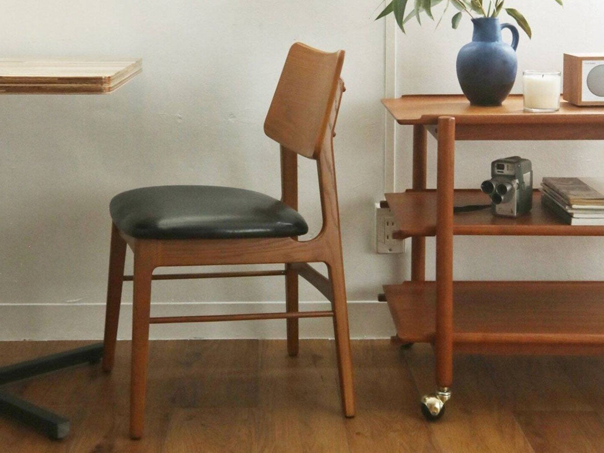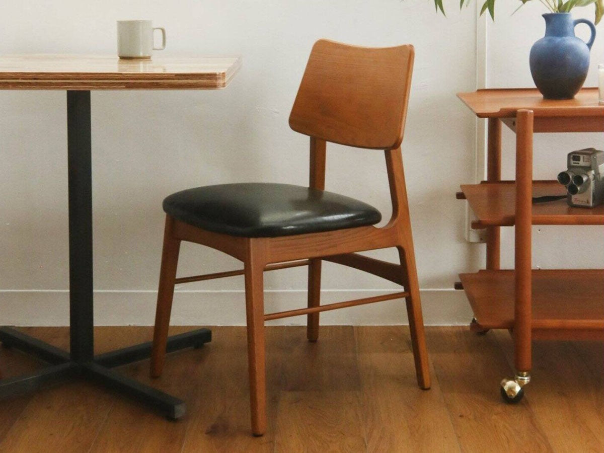 ヨーロッパのヴィンテージ家具をモチーフにデザインされたダイニングチェアです。色味はイギリスのアンティーク家具のようなあめ色を再現しています。あらゆる空間に合わせやすく、ゆったりとした座面で、快適にくつろぐことができます。座面カバーは、取り外しが可能なカバーリング仕様で、洗えるようになっています。カバーを取り外した状態でも、ブラックのPVC(ビニール素材)が張ってあるので、気分に応じて雰囲気を変えることが可能です。