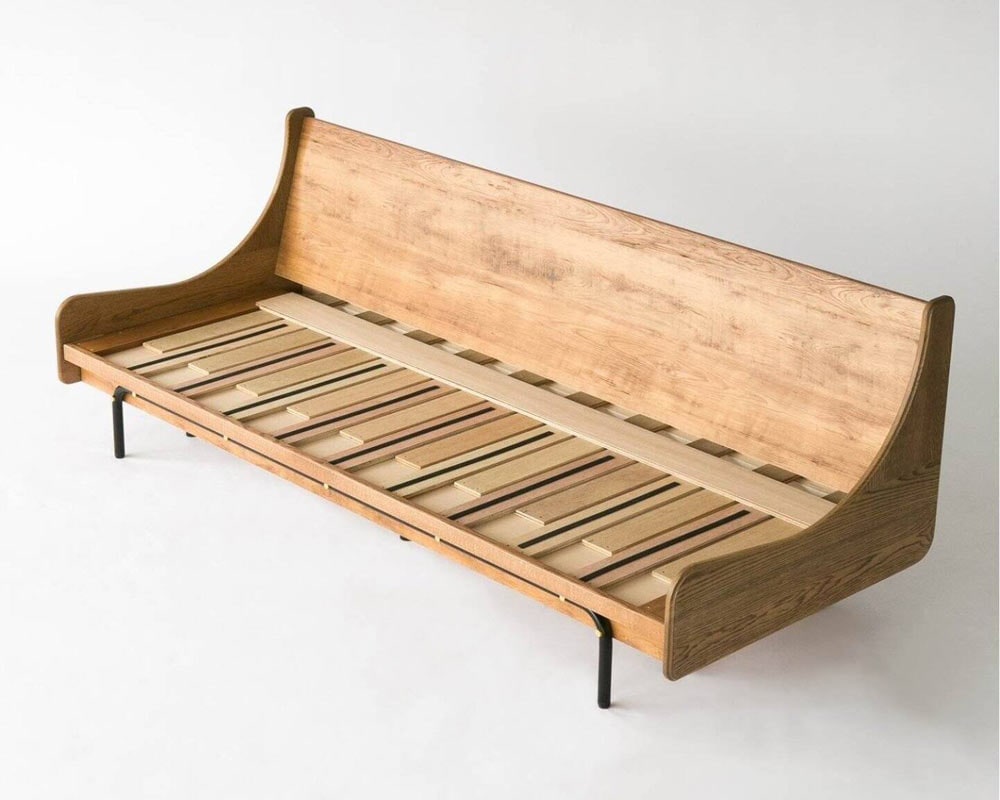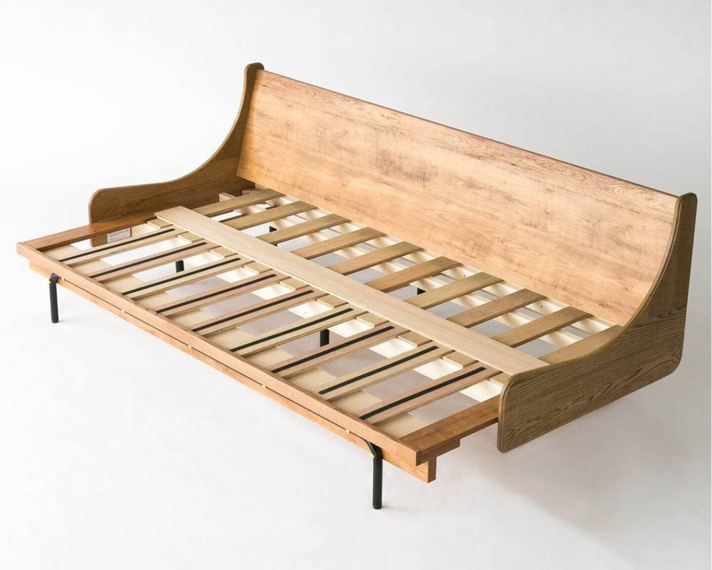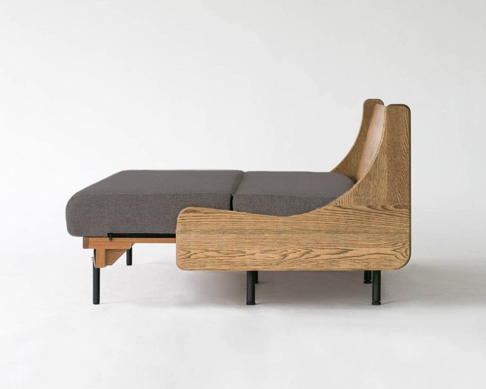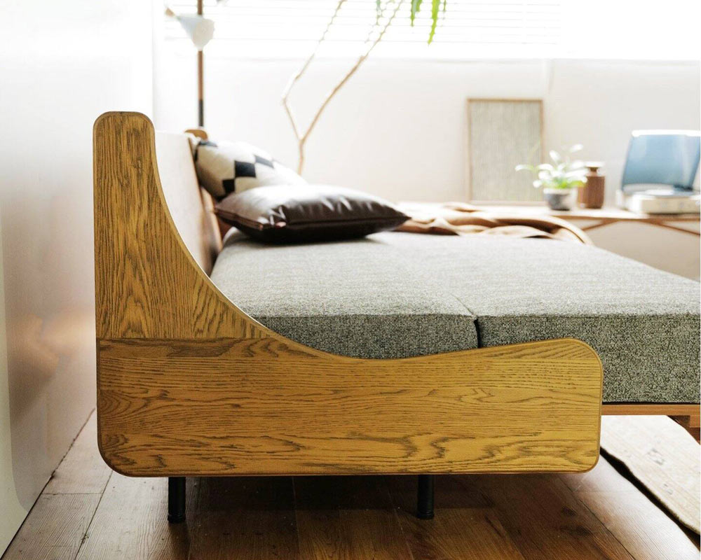 journal standard Furniture(ジャーナルスタンダードファニチャー)の住処という意味を持つ「HABITAT SOFA BED/ハビタソファベット」の新色グレーです。「座る」「寝る」「くつろぐ」の3通りを実現するSOFA BEDの提案です。一人でも簡単に座面を伸び縮みさせる事が可能で、 従来のSOFA BEDに比べると重量も軽く出来ている為、移動も楽々です。普段使いは座面を伸ばした状態で「座敷」のような感覚で足を伸ばしてゴロゴロ過ごしたり、子供と一緒に本を読んだり、カードゲームをして遊んだり。急な来客時には座面を縮めて普通のSOFAとして使用したりと、 様々な場面に万能に対応する事が出来ます。ソファベッドと言うと一人暮らしの方向けで寝心地が悪いという印象を抱いてしまう方も多いのでは? 「HABITAT SOFA BED」は本物のマットレスを使用している為 メインのベットとして使う事はもちろんの事、 急な来客の簡易ベットとしても自信を持ってお客様に勧められるクオリティ。座面のクッションはライトウェーブのシングルサイズをそのまま採用。通常のウレタンの中材と比べて通気性が良い為、「蒸れない」「乾きやすい」と言うメリットもあります。座面の手前(端)は型崩れがしないようにセンターと比べるとライトウェーブの密度が濃くなっています。また、マットレスはファスナーを開けて取り出して水洗いが可能です。カバーも取り外し対応のため、いつまでも清潔に保つことができます。