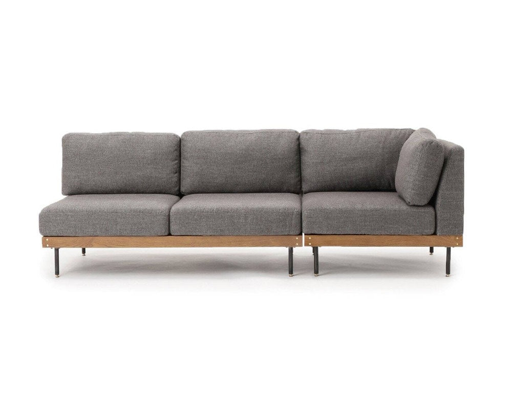 コンパクトで搬入間口を気にせずお使い頂ける、journal standard Furniture/ジャーナルスタンダードファニチャーの「LILLE SOFA 2P/リルソファ」のグレー生地です。コンパクトサイズだがアームレスであることで大人2人が腰を掛けても十分な大きさが最大の魅力。アームが無い事で圧迫感無くお部屋に置くことができます。ウッドベースとスチールレッグの組合せにより軽快感を出す事に貢献し、脚先のアジャスターはデザインのアクセントで真鍮を使用しています。2台並べて大きめソファとして使ったり、別売りの同シリーズオットマンやエンドテーブルやサイドテーブルを組み合わせいただけます。オットマンと組み合わせL字使用も可能です。※仕様変更によりお手入れが可能なフルカバーリング仕様になりました。