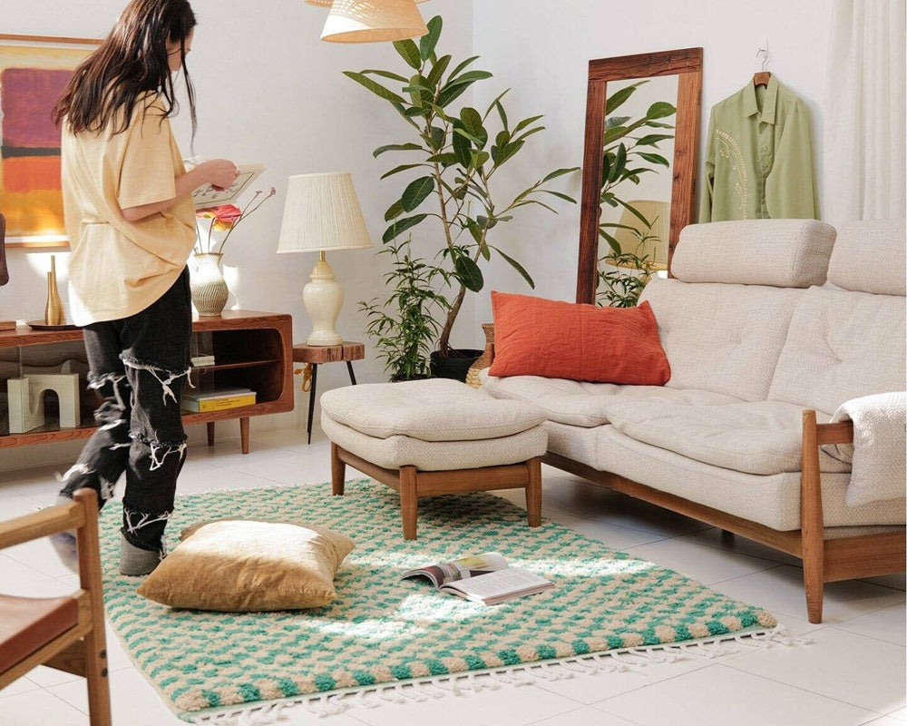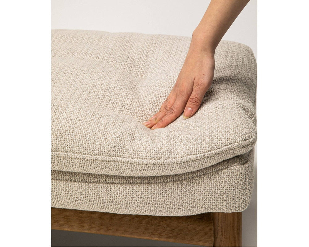 60年代ミッドセンチュリーから着想を得たデザインの、journal standard Furniture/ジャーナルスタンダードファニチャーの「MADEIRA OTTOMAN/マデイラオットマン」です。座面にはフェザー、ウレタンを使用しており、適度な柔らかさが保たれたふっくらした座り心地。マデイラソファのオットマンとしての使用はもちろん、単体で、玄関先やベットルームのデットスペースにも活用していただけます。