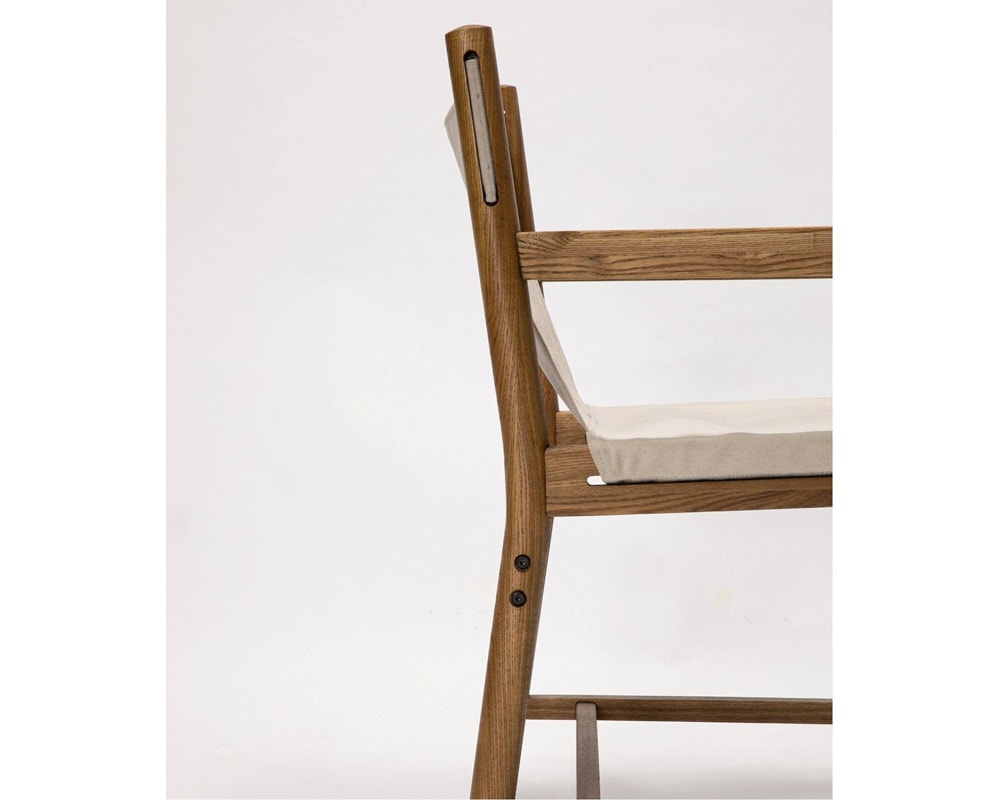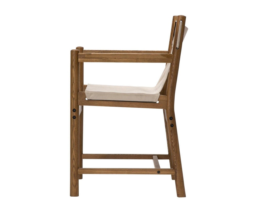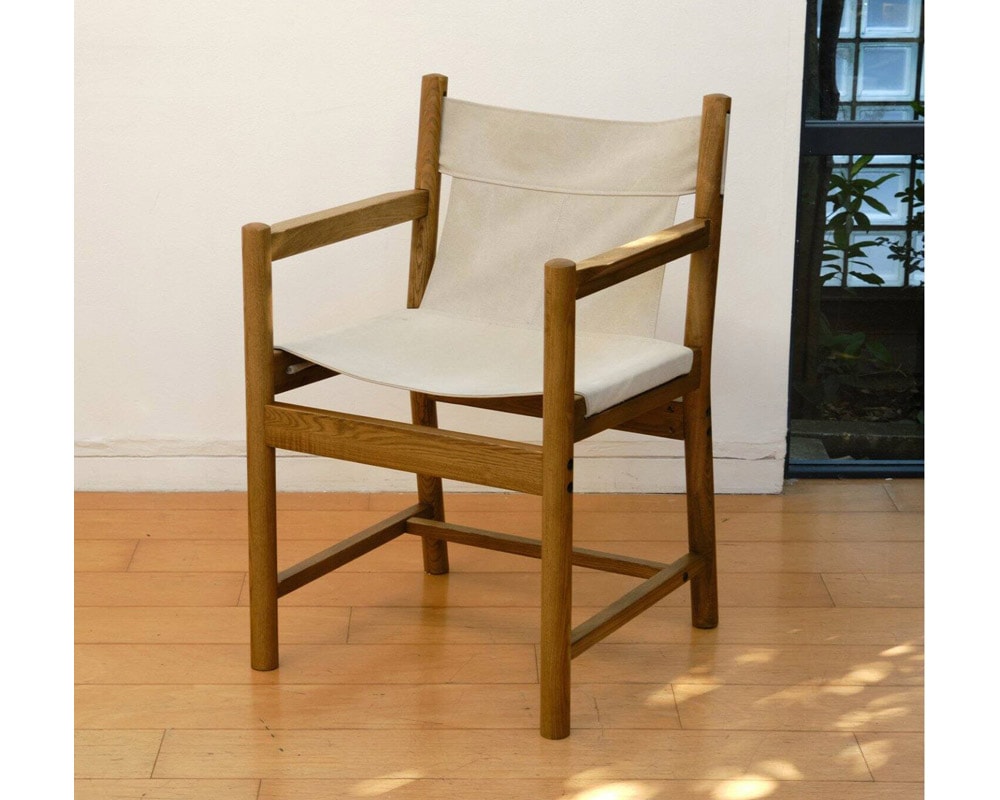 ヴィンテージのサファリチェアからインスパイアを受けてデザインした、journal standard Furniture(ジャーナルスタンダードファニチャー)のダイニングチェア「COLTON ARM CHAIR/コルトンアームチェア」です。ヴィンテージのサファリチェアからインスパイアを受けてデザインしたダイニングチェアです。張地はコットンキャンバス生地と、スプリットレザー使用したレザータイプとの2種類でご用意しております。フレームにピンと張った生地のみでシート部分を構成していますので、ハンモックに腰をかけているような感覚でありながら、しっかりとダイニングチェアとしても使用できるチェアです。シートがファブリックですので、持ち運びしやすい軽量タイプになっています。晴れた気持ちの良い日にはテラスに持ち出して外で食事をとっていただくのもおすすめです。こちらの商品はボルトで組上げた商品になりますので、張地を洗う際は解体することで生地を取り外すことが可能です。
