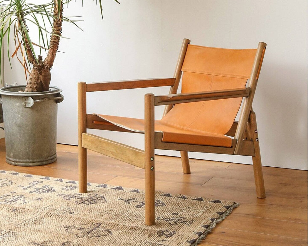 ヴィンテージのサファリチェアからインスパイアを受けてデザインした、journal standard Furniture(ジャーナルスタンダードファニチャー)の「COLTONLOUNGE CHAIR/コルトンラウンジチェア」です。ヴィンテージのサファリチェアからインスパイアを受けてデザインしたダイニングチェアです。張地はコットンキャンバス生地と、スプリットレザー使用したレザータイプとの2種類でご用意しております。同シリーズの中でも、ラウンジチェアはまさにハンモックに座っているように、ゆったりと、落ち着いて座ることのできる仕上がりになっています。一人掛けのラウンジチェアはどうしても大きく見えがちですが、見た目がスッキリしていることもあり、圧迫感を与えずにお部屋に置くことができます。また、丸みを帯びながらストレートなソリッド感も併せ持っているので、様々なテイストの家具にも合わせやすくなっております。サイズに対して比較的軽量に仕上がっていますので、晴れた気持ちの良い日にはテラスに持ち出して外で食事をとっていただくのもおすすめです。自宅で過ごす時間も増え、一人でゆったりと腰をかけたい、という方におすすめの一脚です。こちらの商品はボルトで組上げた商品になりますので、解体することで生地を取り外すことが可能です。