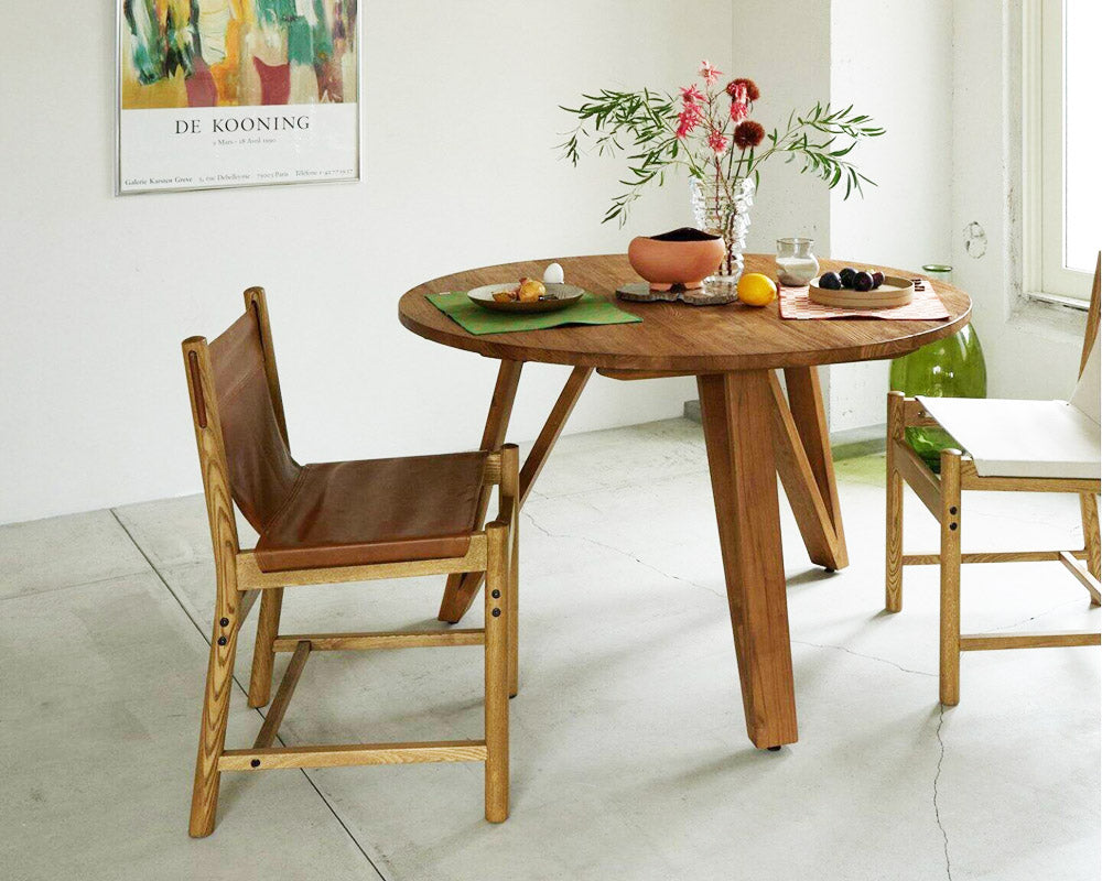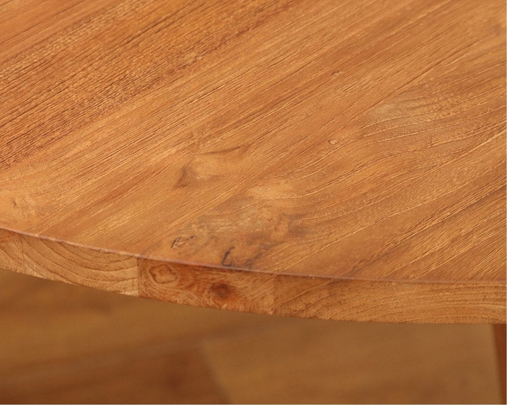 チーク古材を再使用してデザインした、journal standard Furniture(ジャーナルスタンダードファニチャー)の「PANGA ROUND TABLE/パンガ ラウンドテーブル」です。ジャワ島の築100年を超える家屋の解体の際に出た、贅沢なサイズのチーク古材を再利用して製作しています。再生チークは家具に歴史と個性を与えるだけでなく、環境への影響も軽減する事が出来ています。歴史と時代が詰まった素朴な木はそれぞれ個性があり、新しくカットされた木では再現も模倣もできない独特で古材にしか味わうことの出来ない風合いがあります。