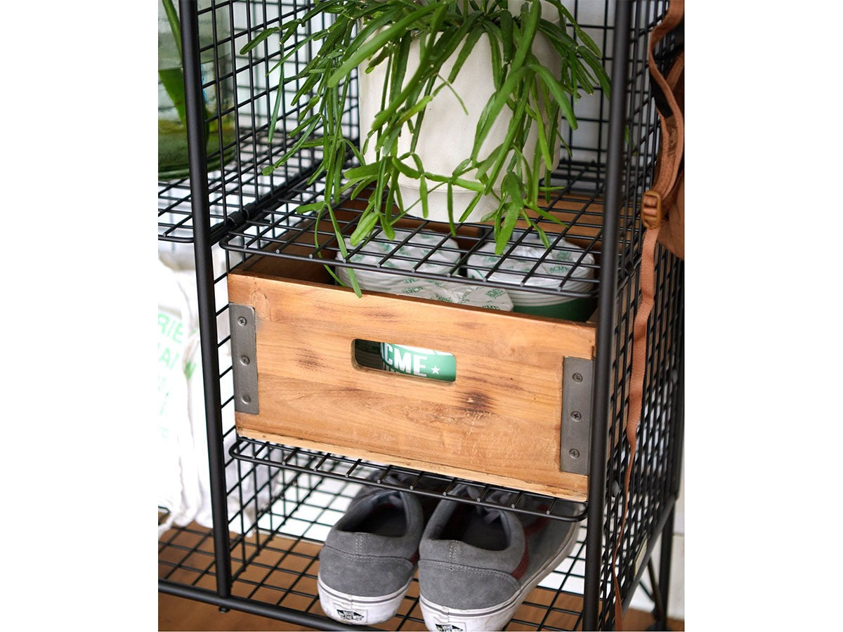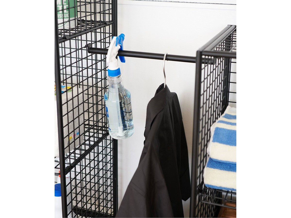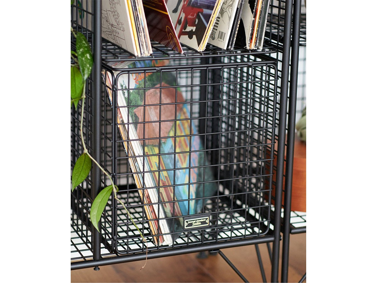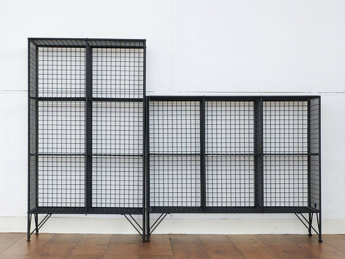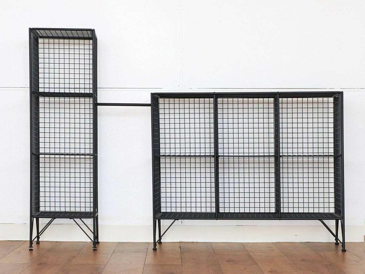 ヴィンテージ家具で見かけるメッシュ仕様のラックを、現代の生活スタイルに合わせてリデザイン。全面がメッシュなので圧迫感を与えず、モダンな空間を演出することができます。お気に入りの雑貨や洋服、本、レコードなどを飾って楽しめる、アパレル什器のような収納家具です。1〜4列までサイズバリエーションがあり、複数台組み合わせて、用途やスペースに合った壁面収納をレイアウトできます。棚板を外してハンガーバーを取付ければ、ハンガーラックとしてシャツやジャケットを掛けることができます。また、同シリーズのメッシュボックスを収納箱として使用することも可能です。