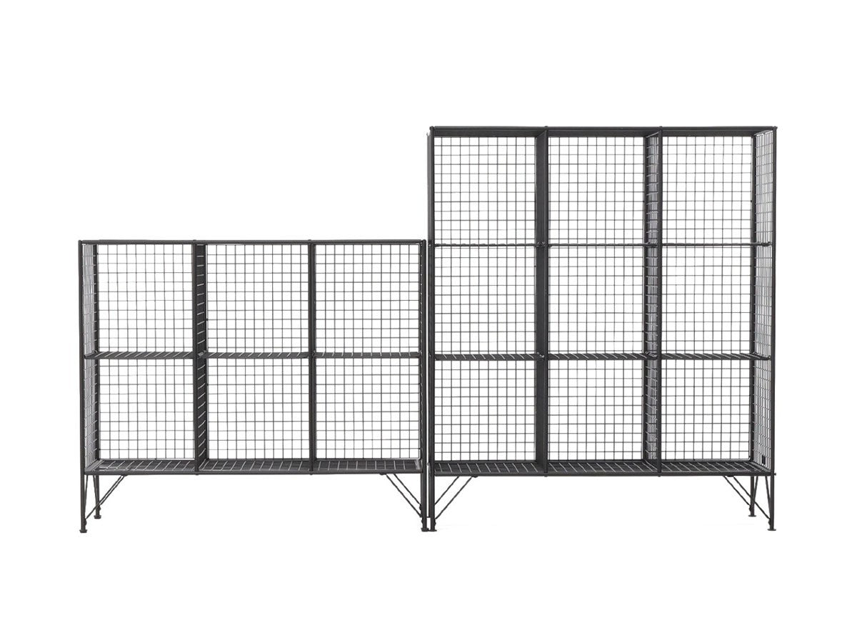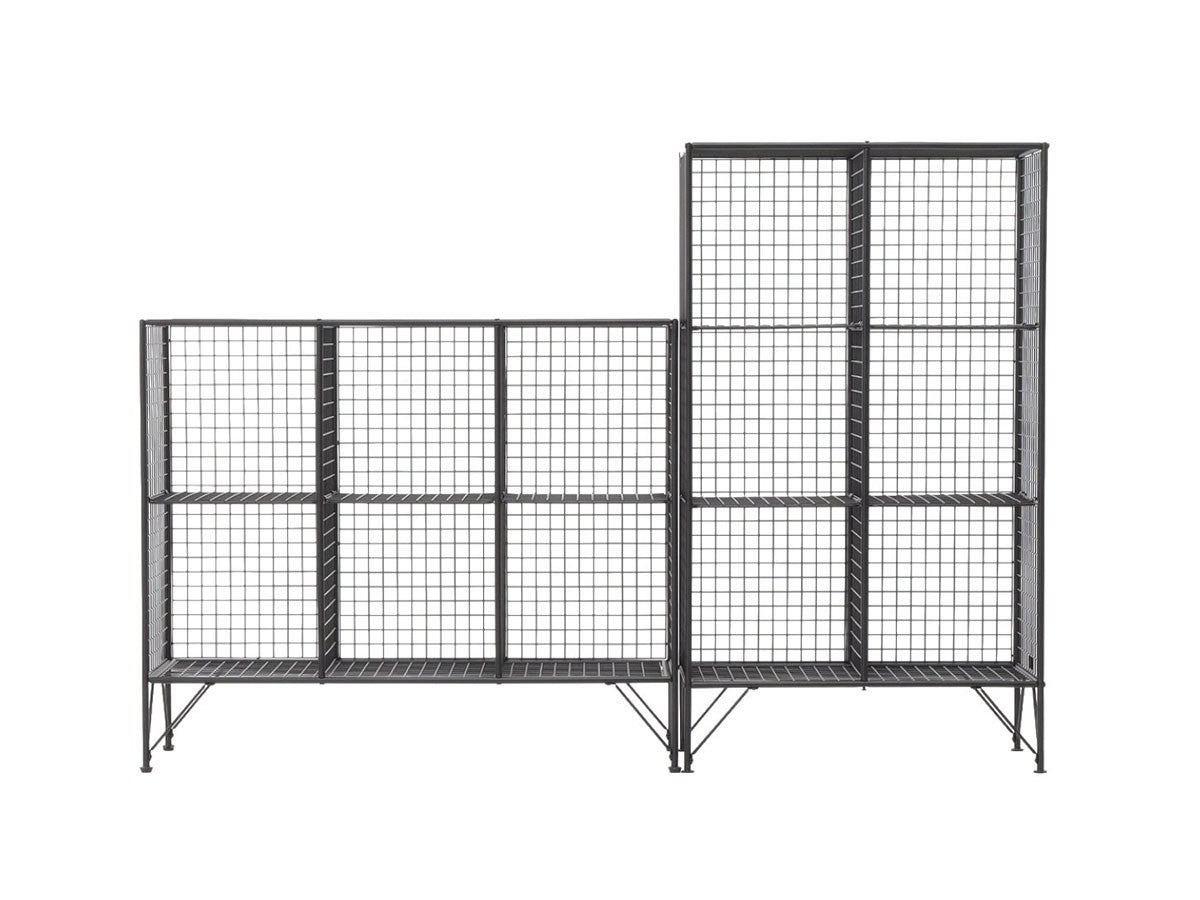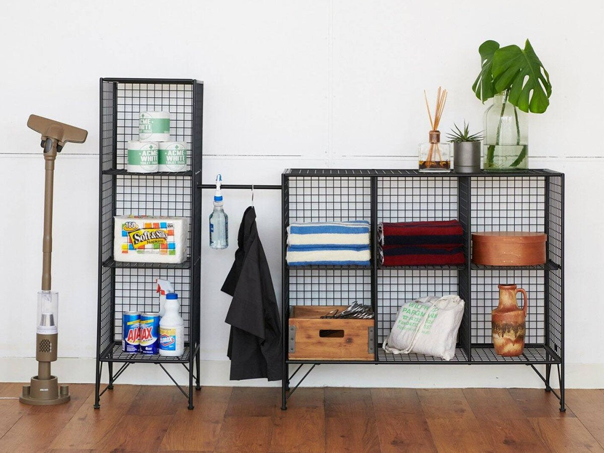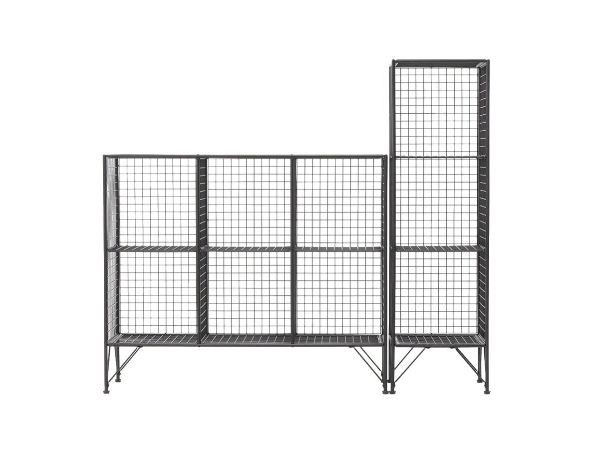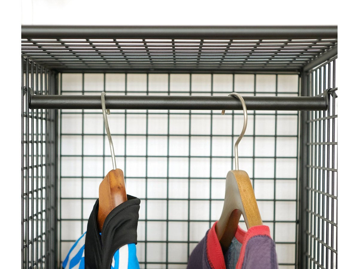 ヴィンテージ家具で見かけるメッシュ仕様のラックを、現代の生活スタイルに合わせてリデザイン。全面がメッシュなので圧迫感を与えず、モダンな空間を演出することができます。お気に入りの雑貨や洋服、本、レコードなどを飾って楽しめる、アパレル什器のような収納家具です。1〜4列までサイズバリエーションがあり、複数台組み合わせて、用途やスペースに合った壁面収納をレイアウトできます。棚板を外してハンガーバーを取付ければ、ハンガーラックとしてシャツやジャケットを掛けることができます。また、同シリーズのメッシュボックスを収納箱として使用することも可能です。