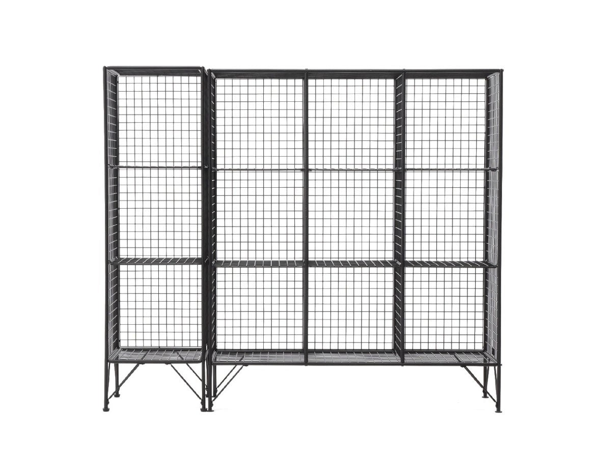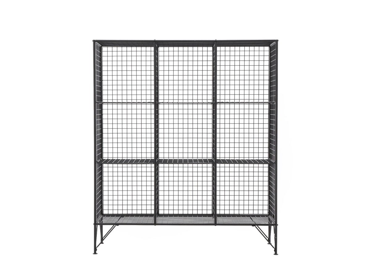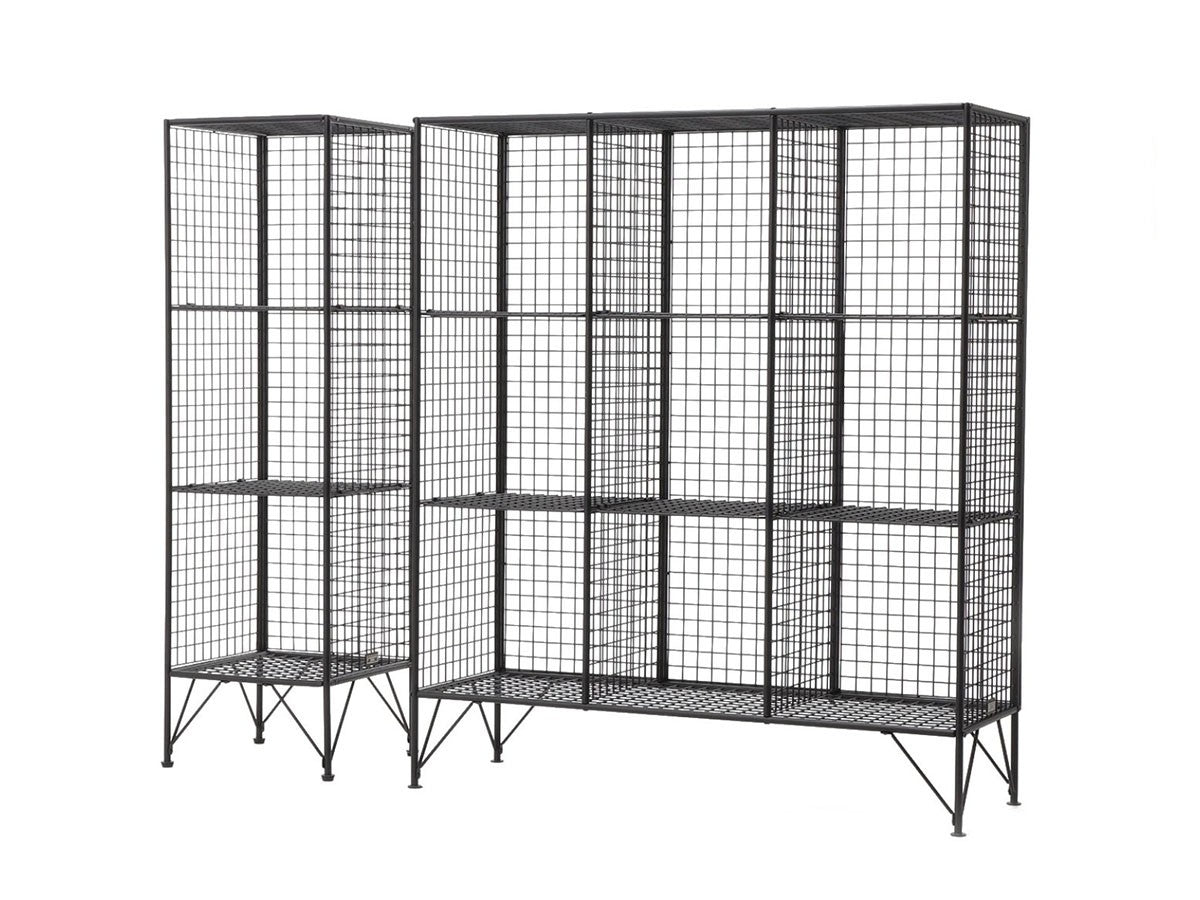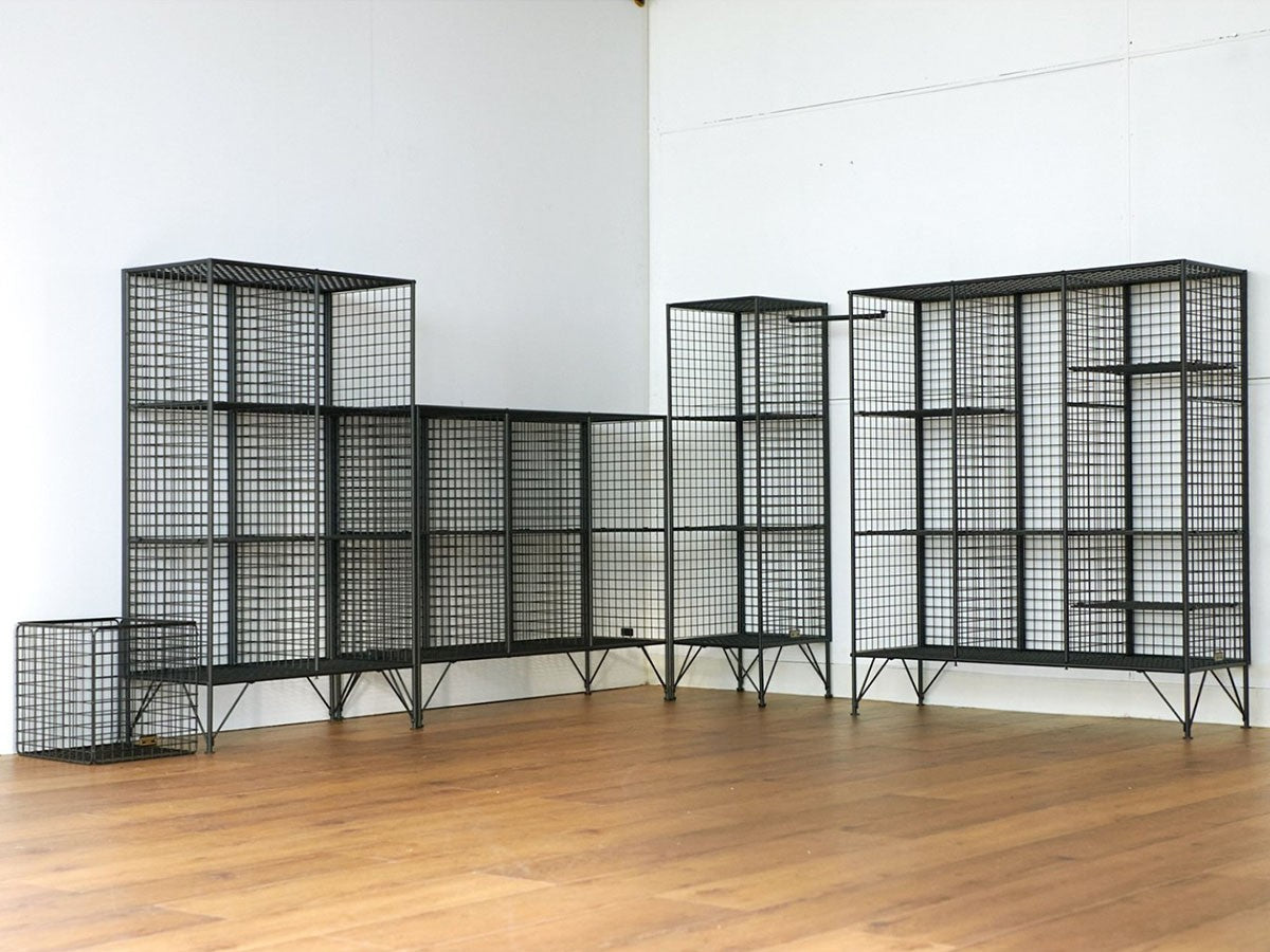 ヴィンテージ家具で見かけるメッシュ仕様のラックを、現代の生活スタイルに合わせてリデザイン。全面がメッシュなので圧迫感を与えず、モダンな空間を演出することができます。お気に入りの雑貨や洋服、本、レコードなどを飾って楽しめる、アパレル什器のような収納家具です。1〜4列までサイズバリエーションがあり、複数台組み合わせて、用途やスペースに合った壁面収納をレイアウトできます。棚板を外してハンガーバーを取付ければ、ハンガーラックとしてシャツやジャケットを掛けることができます。また、同シリーズのメッシュボックスを収納箱として使用することも可能です。