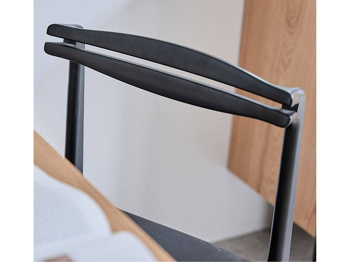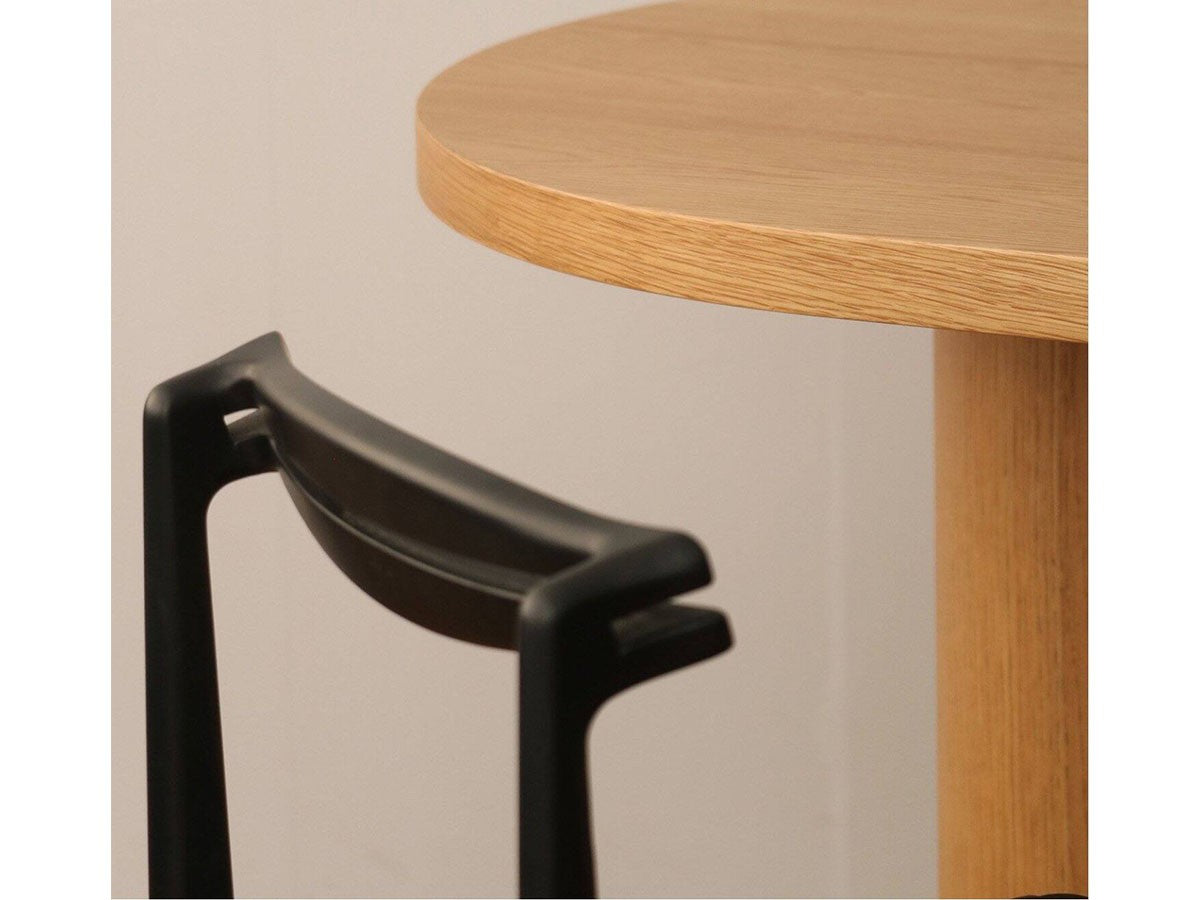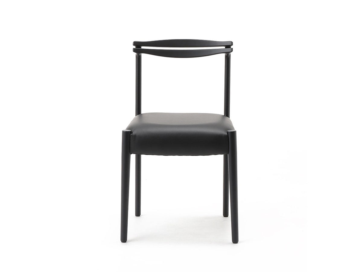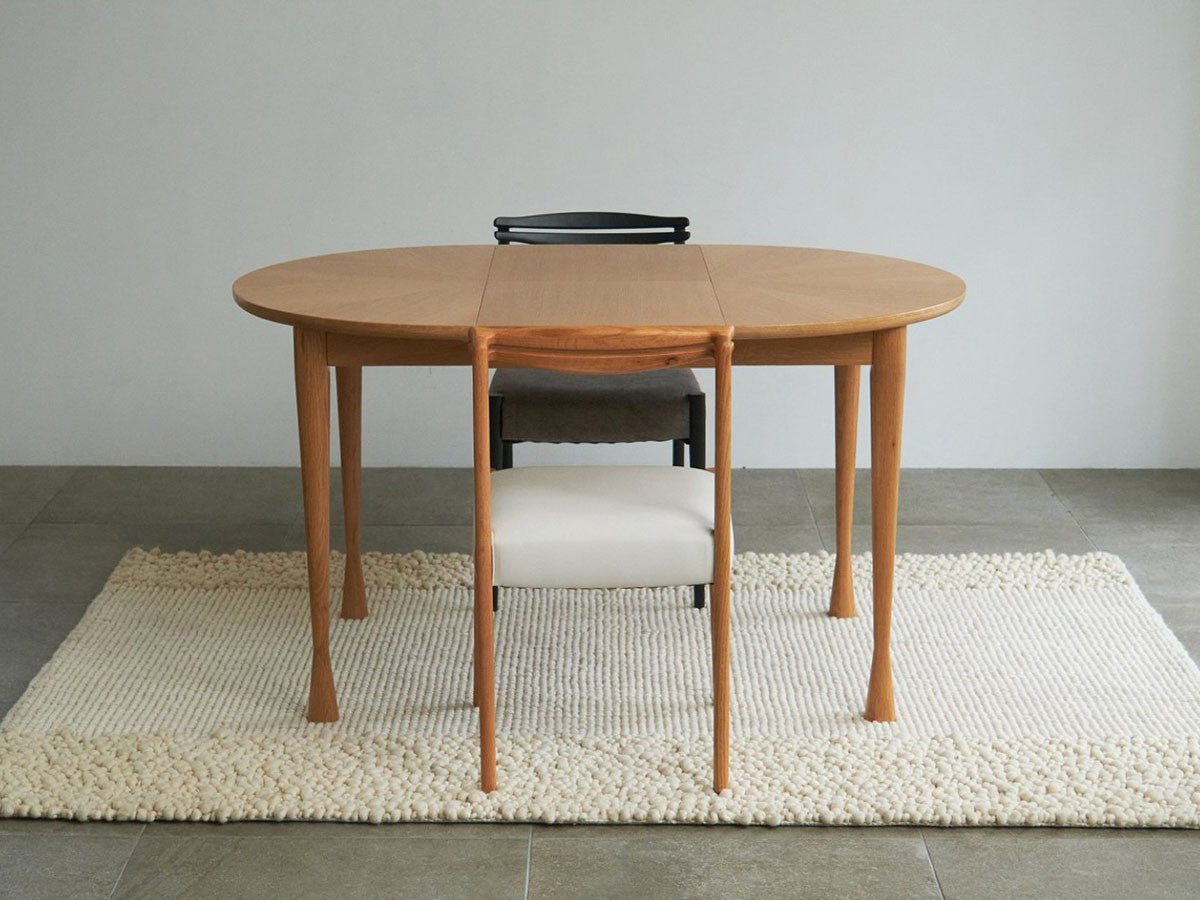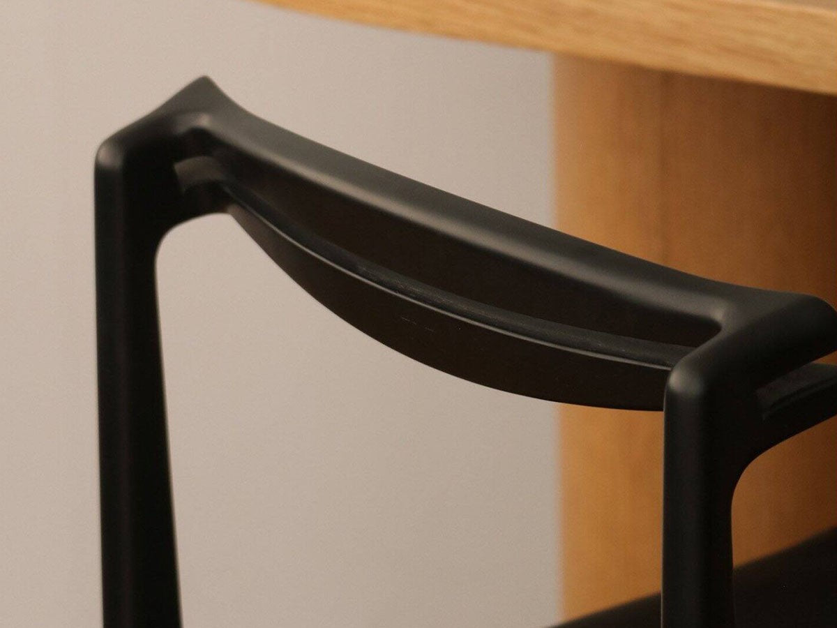 後ろ脚から背もたれへの接合部の意匠が美しいダイニングチェア。木目がきれいなレッドオーク材、強度が高く頑丈なビーチ材の無垢材を使用しています。脚の貫をなくしてすっきりしたデザインにすることで、軽量化を実現しています。座面にはお手入れのしやすいPVC素材を採用。オプションでグレー色のファブリック製カバーがあり、気分や季節に応じて付け替えてお楽しみいただけます。