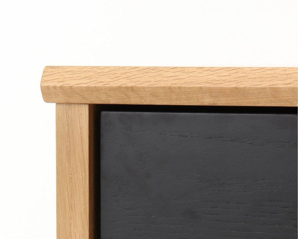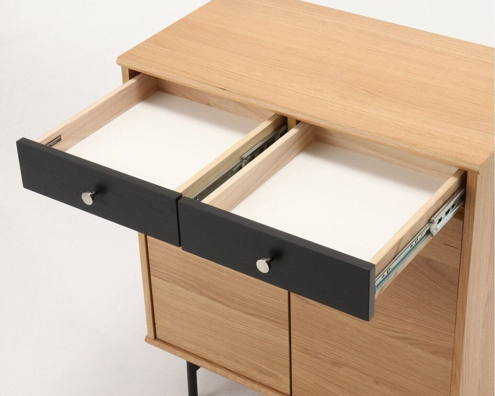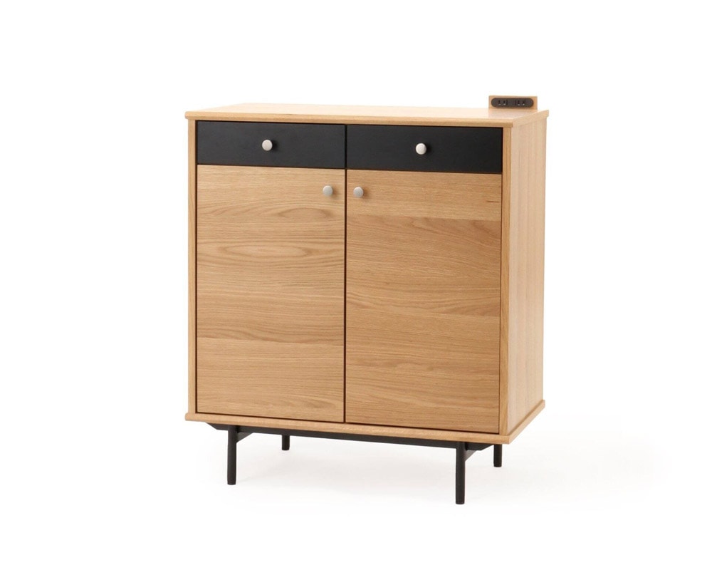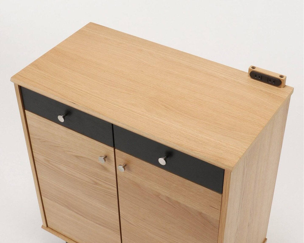 組み合わせてリビング、キッチン、寝室でご利用ができる、北欧ヴィンテージテイストの「HABITAT/ハビタ」シリーズのキッチンカウンター、ナチュラルトーンの新色です。一般的な家庭のキッチンの広さは4.5帖程度と言われています。実質置ける収納アイテムの大きさは2m前後がおおよその一般的に置けるスペースと考えられます。そこにキッチンカウンターとボードを置く事を考慮してサイズを考えられています。もちろん1台のみでもある程度の機能と収納容量確保出来ますが、HABITAT/ハビタシリーズ4種類のサイズバリエーションの組み合わせ次第で、設置スペースに合わせて自由に組み合わせることが可能です。抽斗の前板を黒くする事で北欧ヴィンテージのモダンな印象を感じられ、北欧テイストやナチュラルのインテリアにも挿して取り入れやすいデザインです。キッチンで収納兼作業台としてのコンパクトなサイジングで、脚元は、お掃除ロボットが通り抜けられるサイズになっています(約12.5cm)。また、コンセントは取り外しが可能なので、リビングスペースで使えるチェストやキャビネットとしてお使いいただけます。取り付けたままでもテーブルランプや、携帯電話等の電源供給下として便利に使って頂けます。