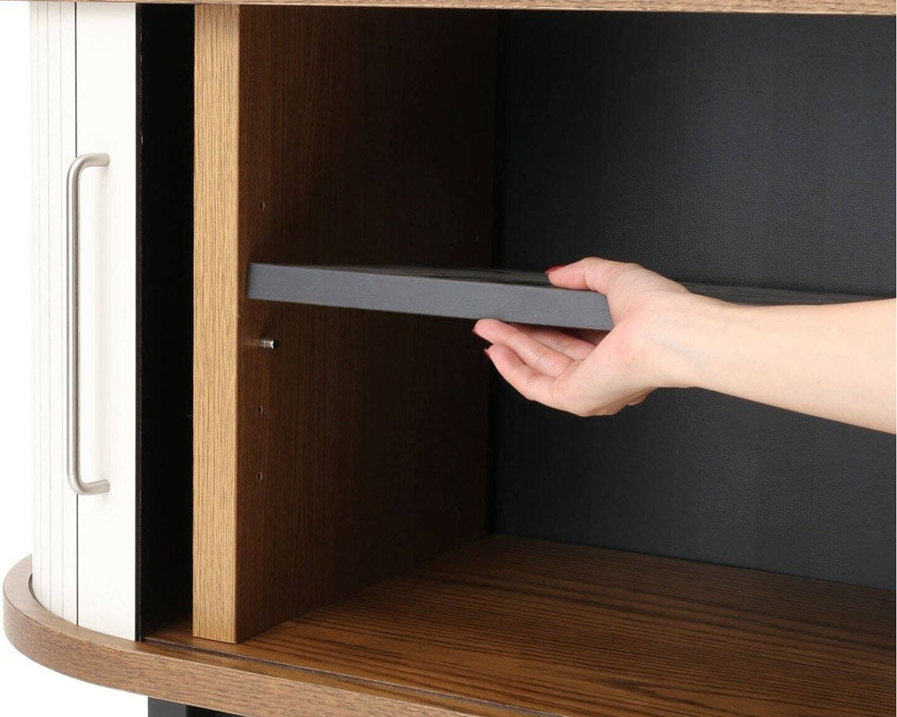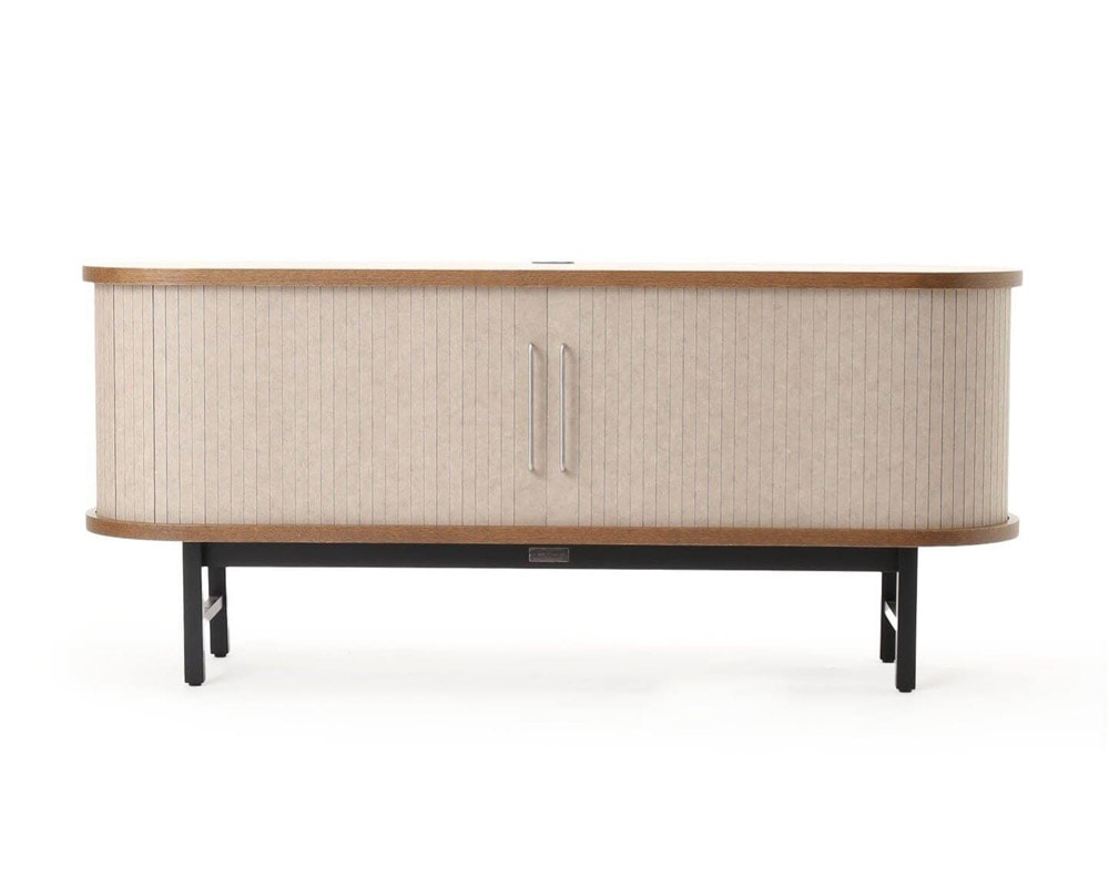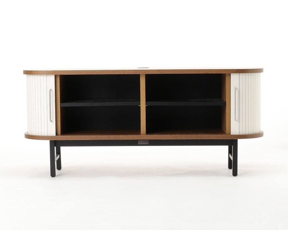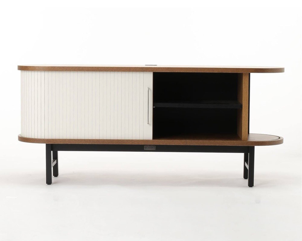 フレンチヴィンテージをイメージした、journal standard Furniture/ジャーナルスタンダードファニチャーのANOR SIDE BOARD /アノール サイドボードです。フレンチヴィンテージのサイドボードをイメージソースに、日本の住空間に合わせやすいようにデザインされた蛇腹式のサイドボードです。蛇腹扉の特性を生かした丸みを帯びたデザインが、空間を柔らかく演出し、部屋に置いた際の圧迫感を軽減してくれます。ステンレス素材のハンドルがデザインを引き締め、良いアクセントになっています。底板に配線用の穴が開いていますのでTVボードとしてもお使いいただけます。