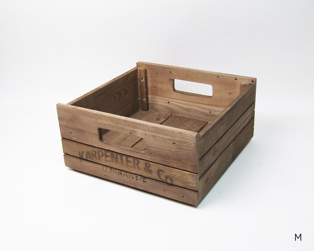 journal standard Furnitureが、KARPENTERに別注をかけた3サイズのスタッキング可能なウッドボックスです。素材にリサイクルウッドを使用しており、古材ならではの風合いをお楽しみいただけるウッドボックスです。それぞれスタッキングができるようになっていて、積み重ねて使えるのも非常に便利なアイテムです。正面または側面には「KARPENTER」のロゴがステンシルで入り、サイズを3サイズご用意していますので用途によって使い分けも可能です。[KARPENTER(カーペンター)] KARPENTERは、フランス人のHuguesがインテリア会社でのバイヤー時代に、インドネシアのチーク材に出会い、イタリア人のRobertoと立ち上げたブランド。KARPENTERの製品は、FSC(R)(Forest Stewardship Council(R)、森林管理協議会)に認証を得ています。FSC認証とは「森林の伐採を、環境や地域社会に配慮して、実施・管理された森林」に由来する製品であると保証された、環境に優しい品質の証です。FSC認証商品を購入することで、適切な森林管理を行なっている林業者を支援することができ、その支援が世界の森林保全に貢献することになります。
